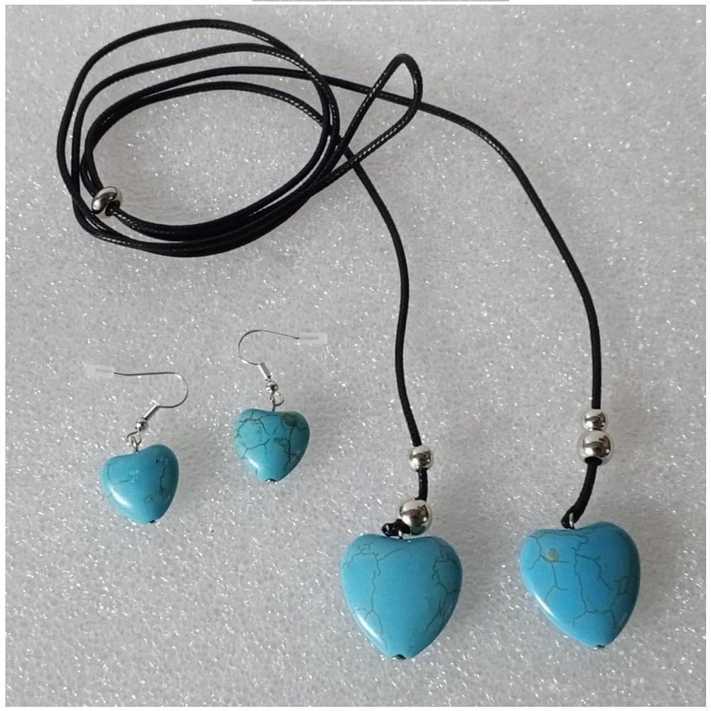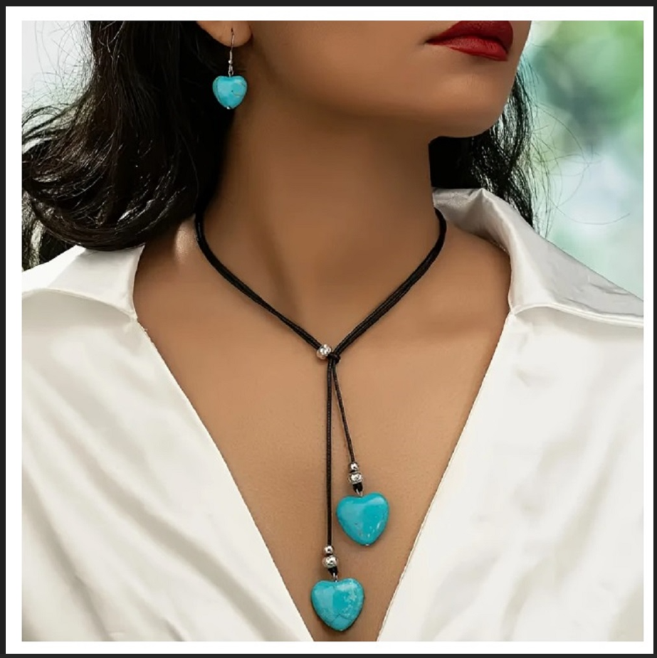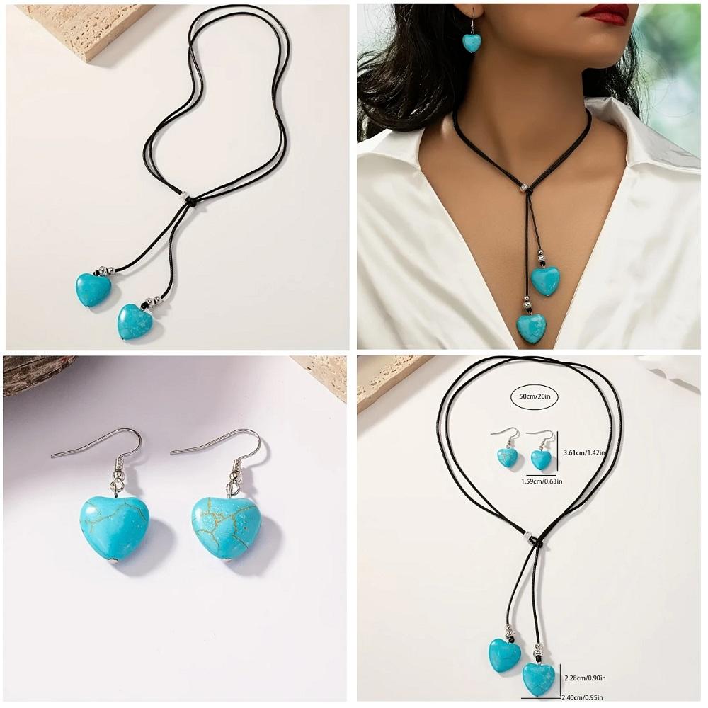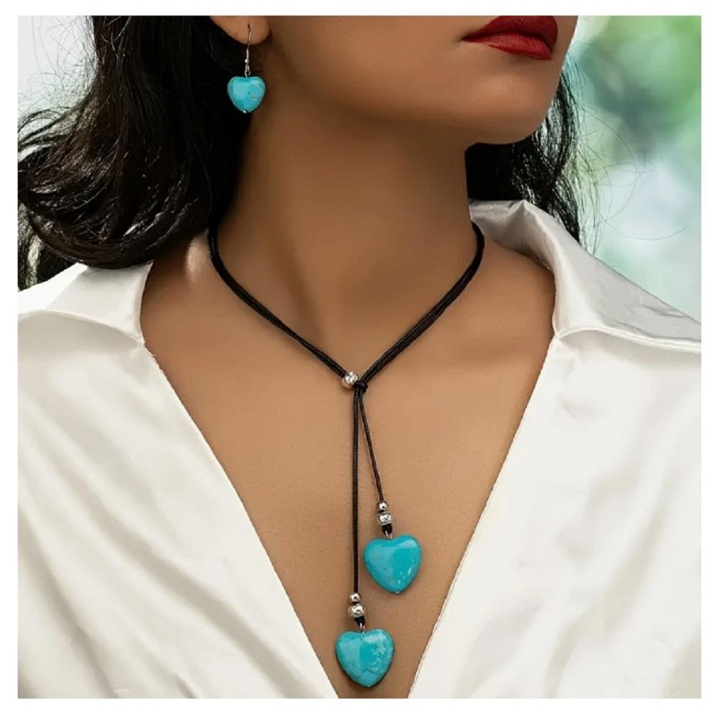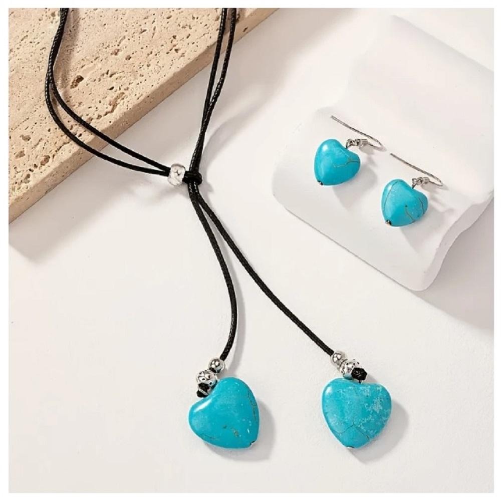 1 SET TURQUOISE HEART TAKI TURKUAZ RENK KÜPE & KOLYE SETİ