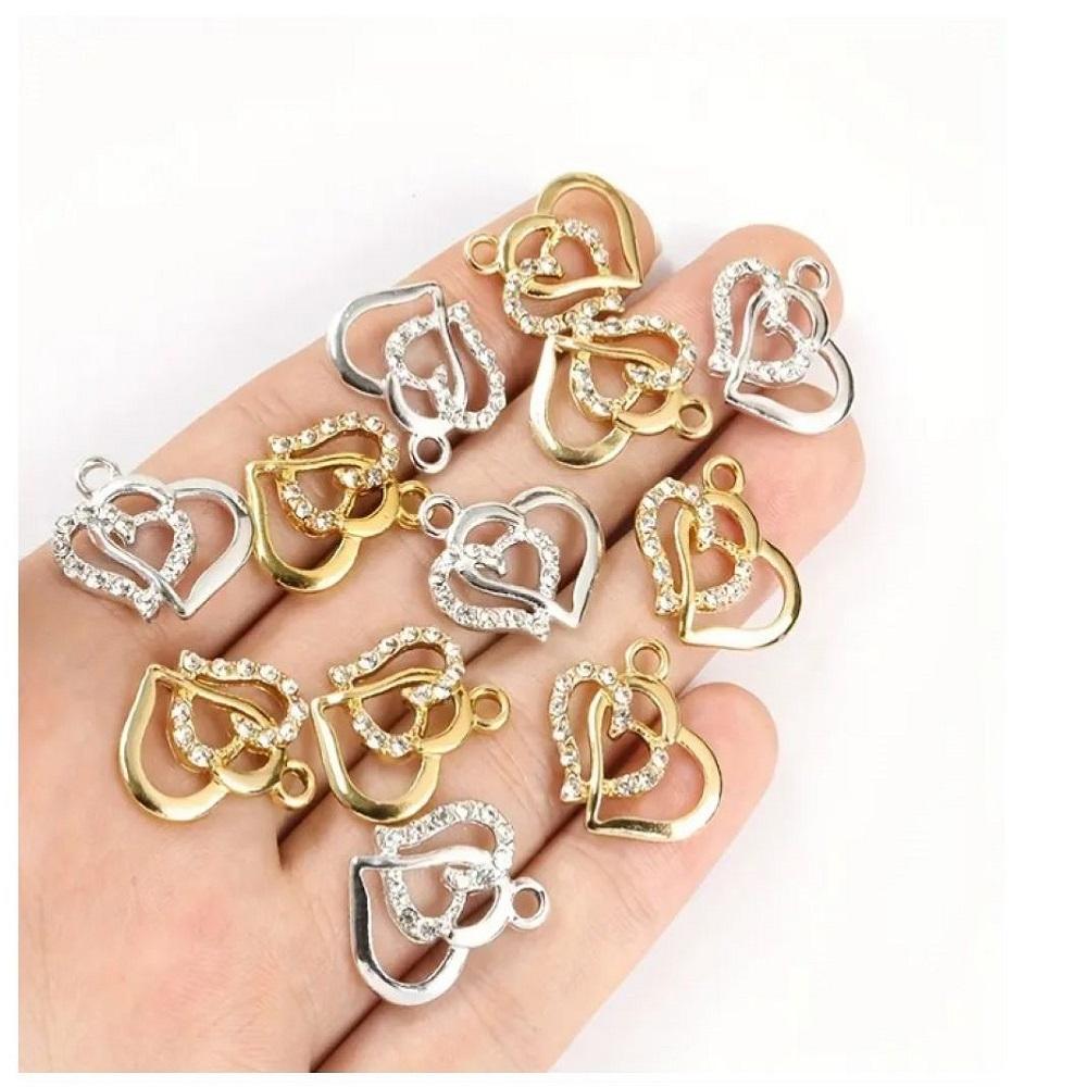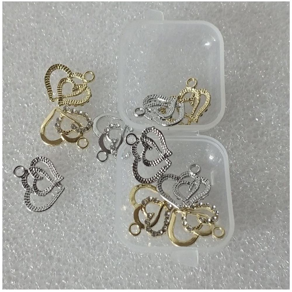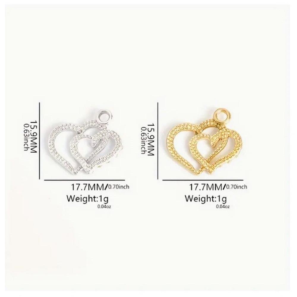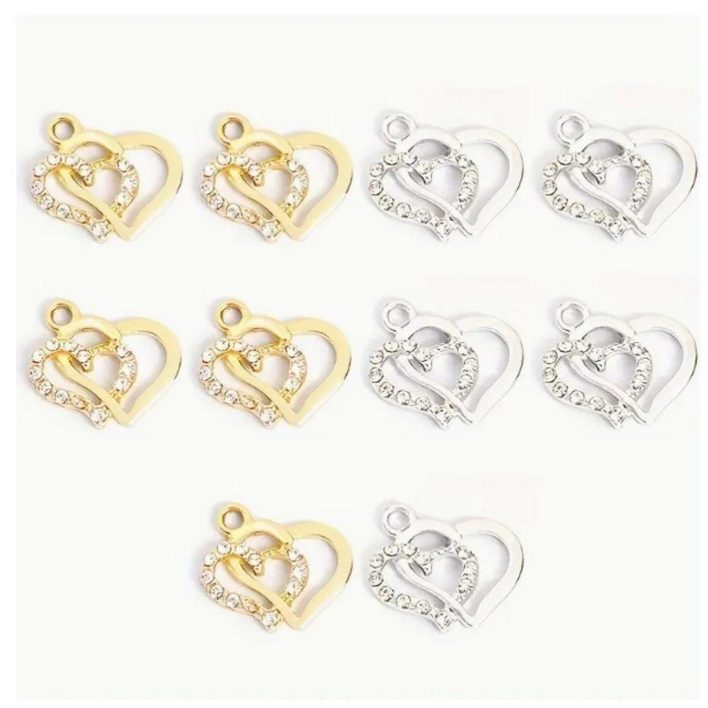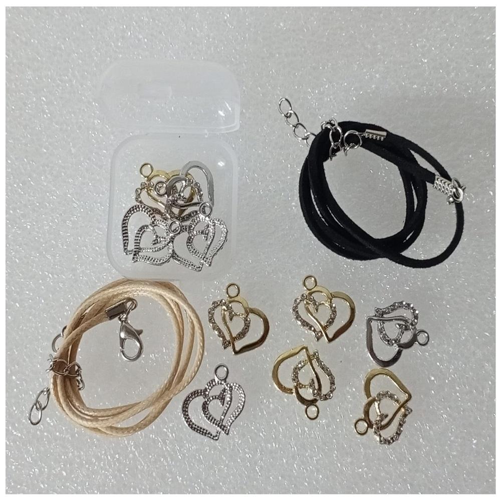 ( 10 X ADET ) 1 SET MODEL I TAŞLI ELMAS KALP ÇİFTLİ KALP BİLEKLİK & KÜPE & KOLYE UCU