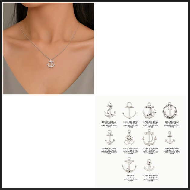 (100 X ADET) 1 PAKET ANTİKA GÜMÜŞ ÇAPA & PUSULA & OKYANUS & DENİZCİ BİLEKLİK & KÜPE & KOLYE UCU
