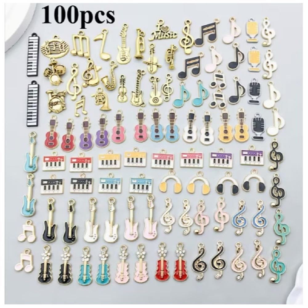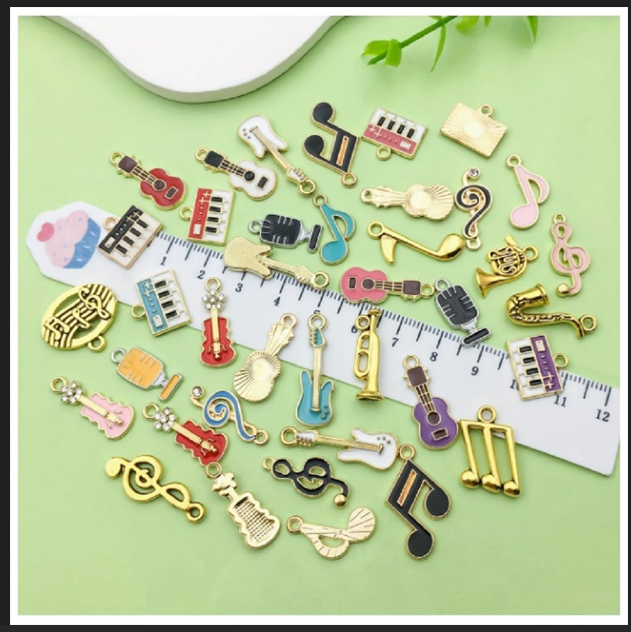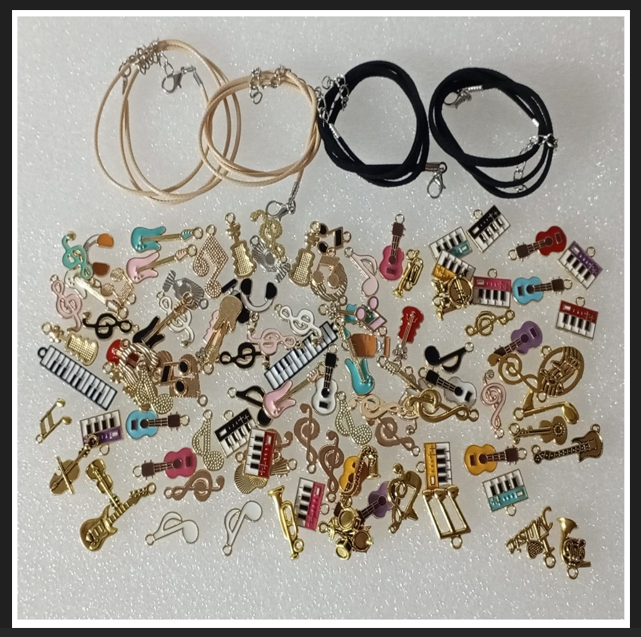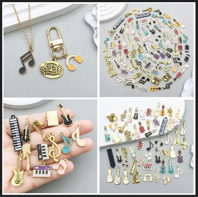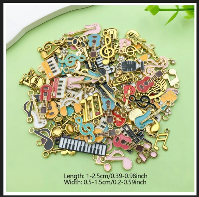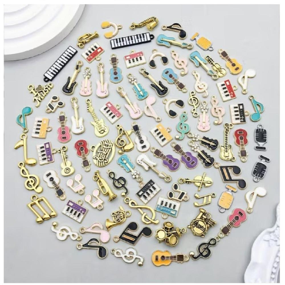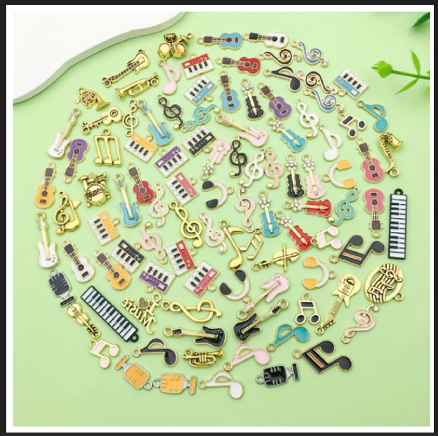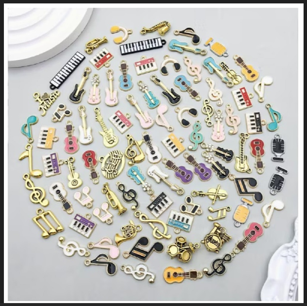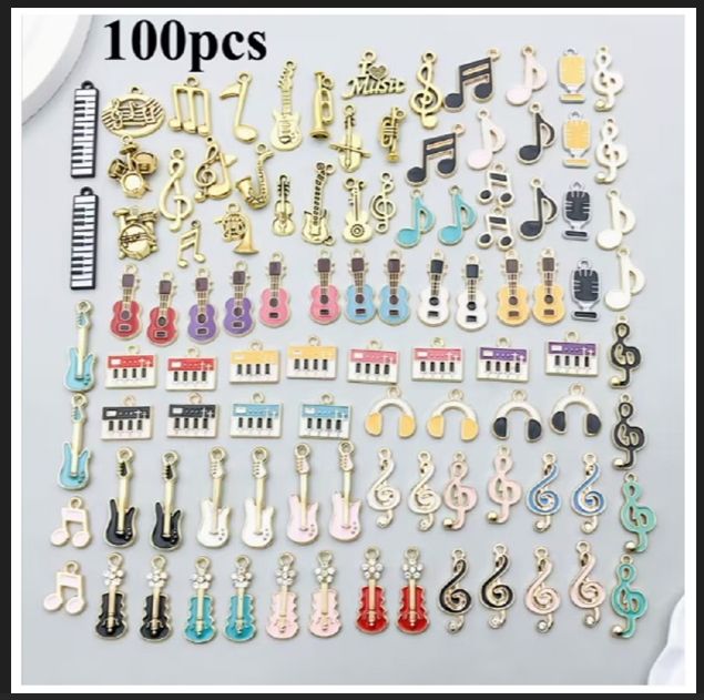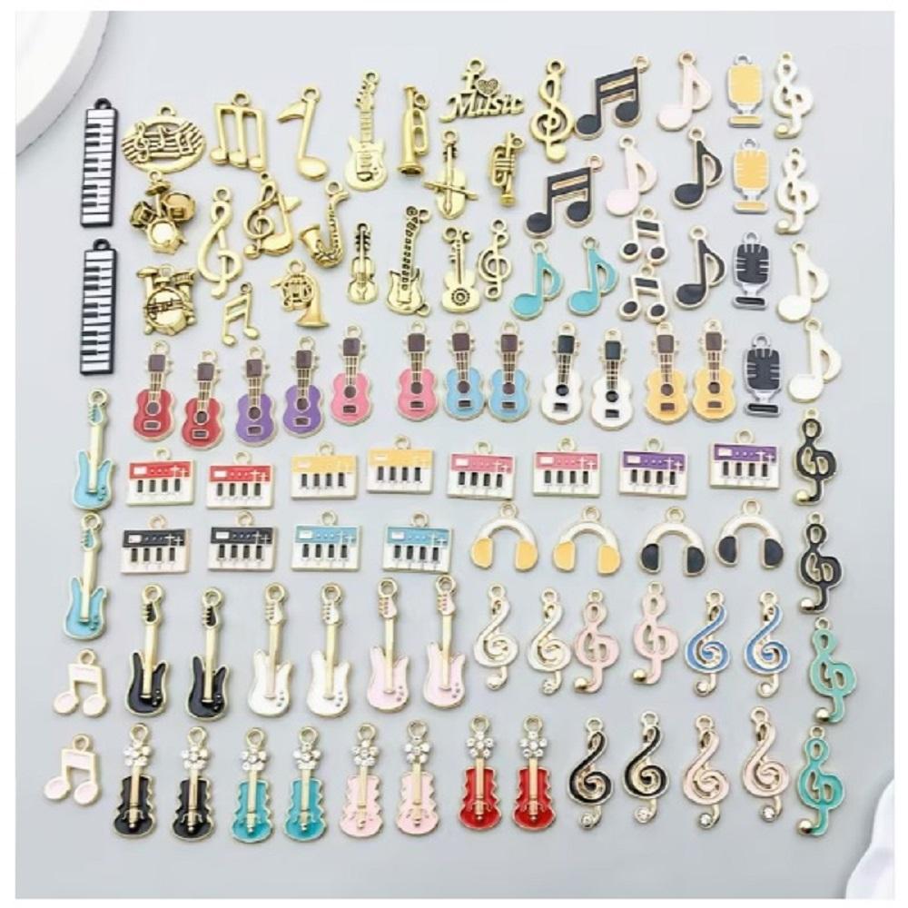 ( 100 X ADET ) 1 SET MÜZİK HİSSİ SETİ ENSTRÜMAN & NOTA / BİLEKLİK & KÜPE & KOLYE UCU
