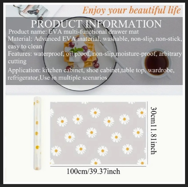 (100CM) 1 RULO DOLAP&ÇEKMECE SU&YAĞ GEÇİRMEZ TEMİZLENEBİLİR KAYMAZ KAPLAMA ÖRTÜ