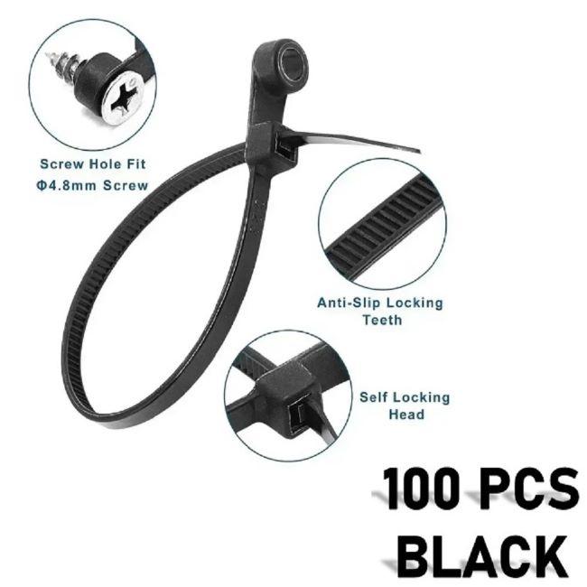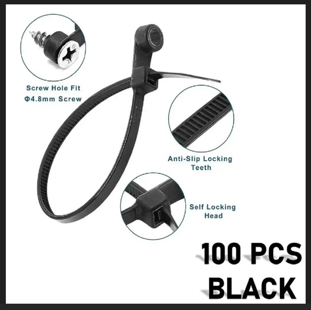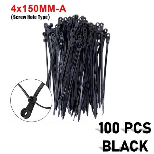 (100XADET) QUALITY ORGANİZTÖR KABLO BAĞI SABİTLEME YUVALI 4X150MM SİYAH