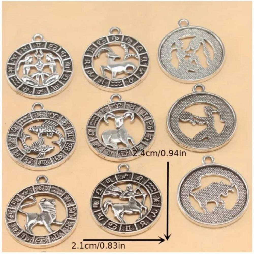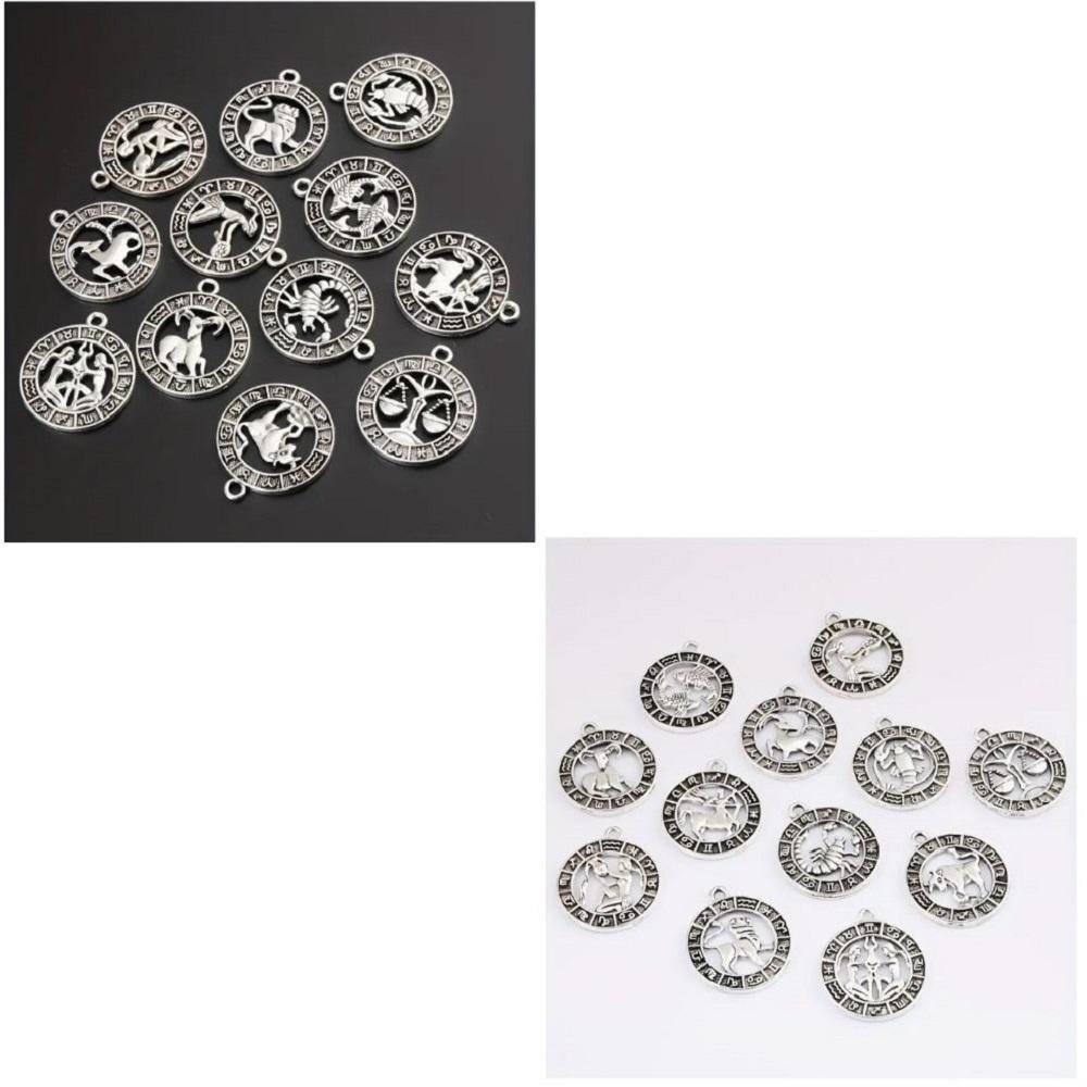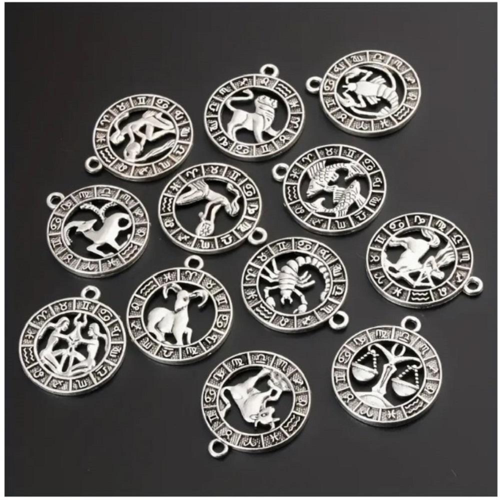 ( 12 PARÇA ) TARZ GÜMÜŞ KAPLAMA KLASİK 12 BURÇ BİLEKLİK&KÜPE&KOLYE UCU
