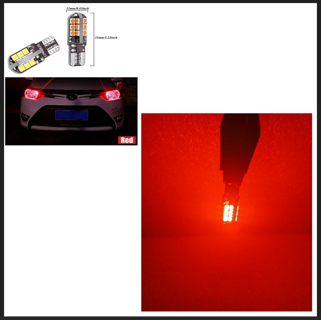 (2 X ADET) 1 TAKIM CANBUS T10 24 LED 3030 CHIP RED ( 24 LED DİPSİZ AMPUL KIRMIZI )