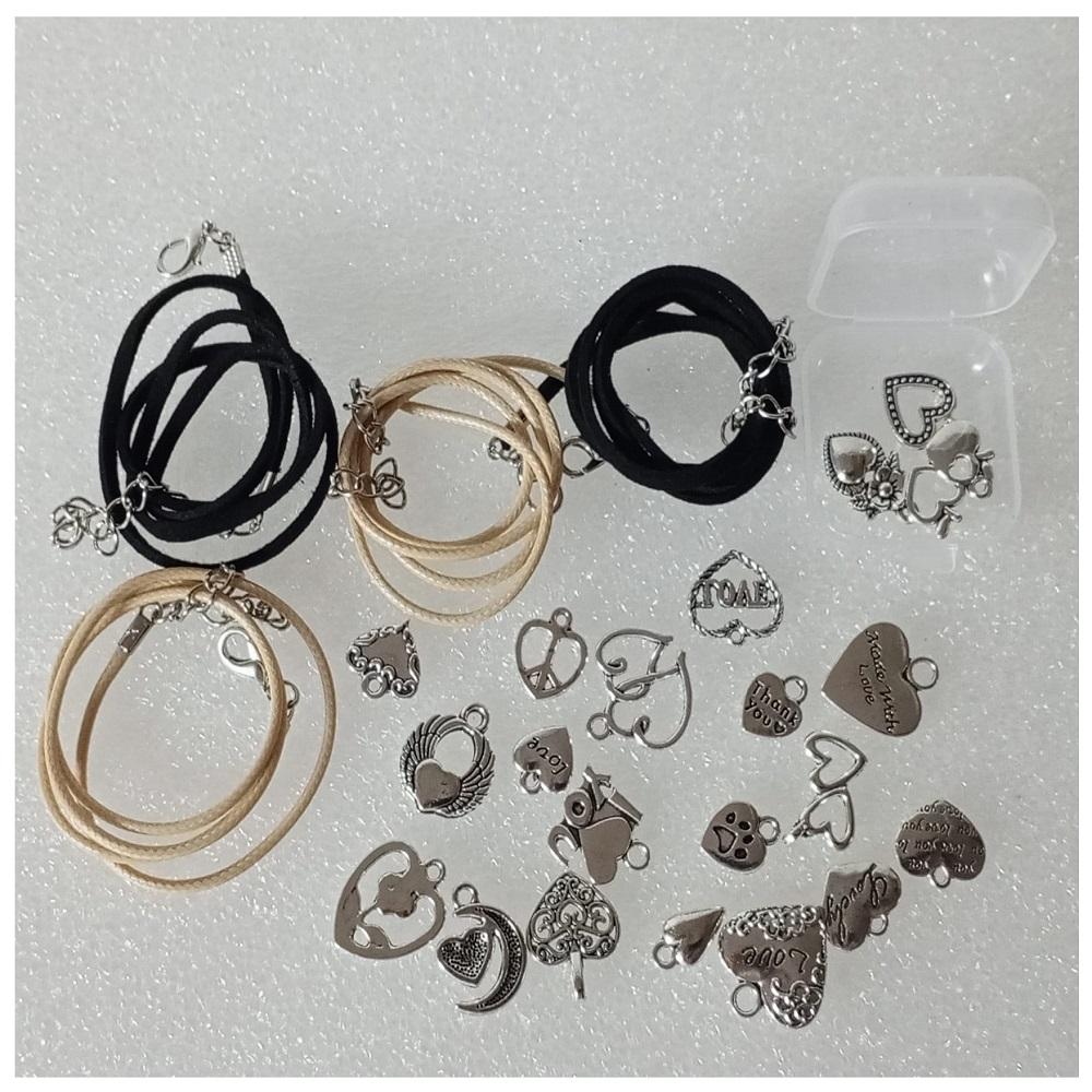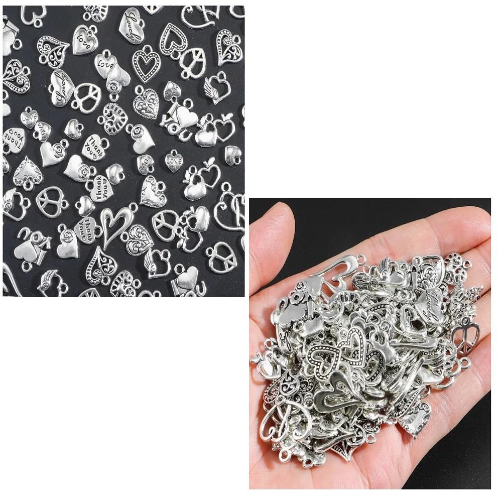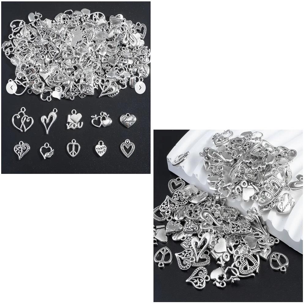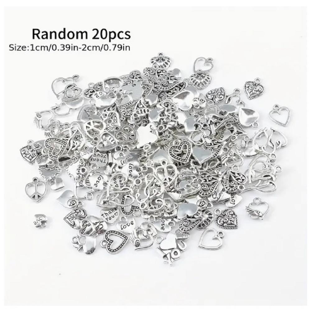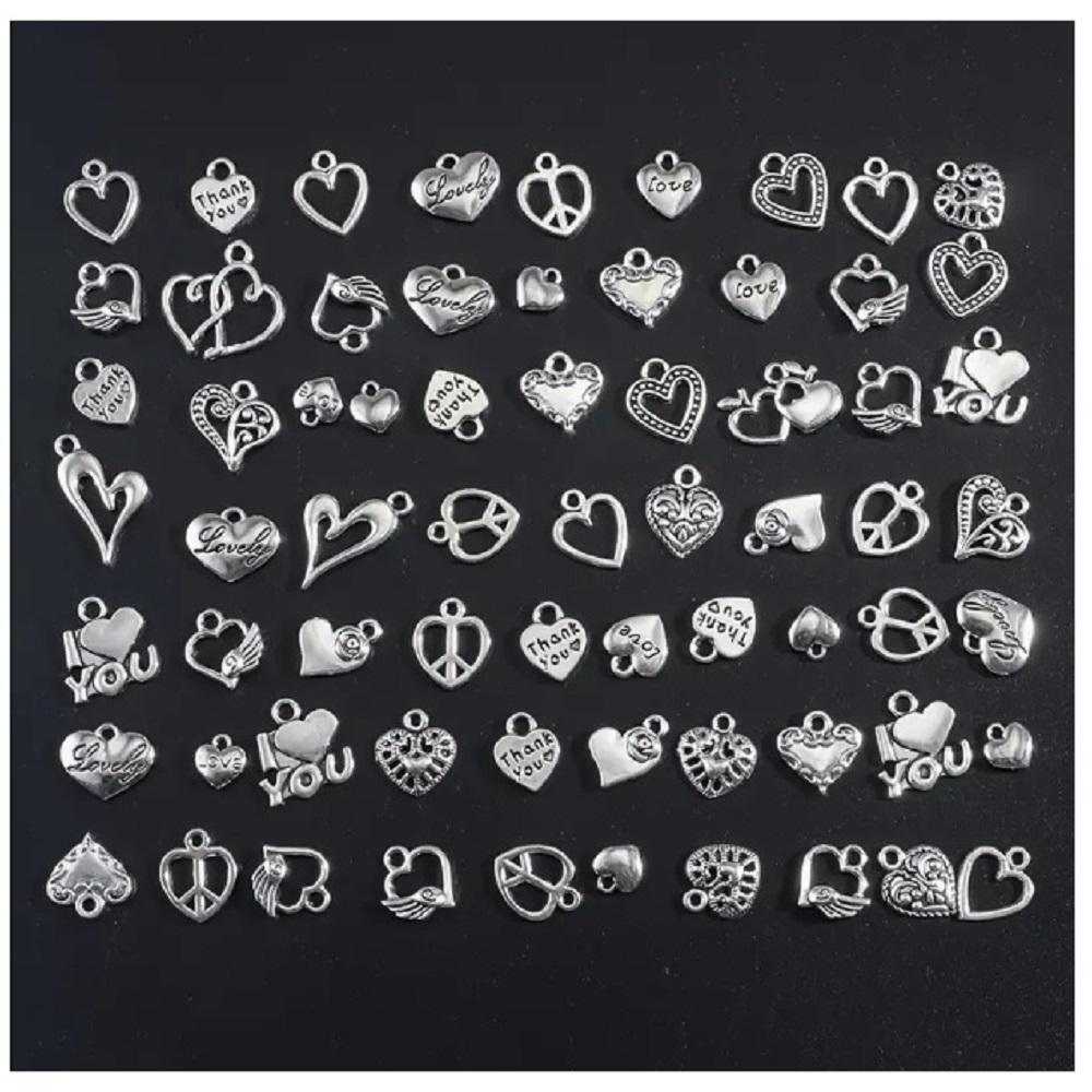 ( 20 X ADET ) 1 SET ANTİKA GÜMÜŞ KALP SÜSLERİ & KOLYE UCU & KÜPE & BİLEKLİK AKSESUARLARI