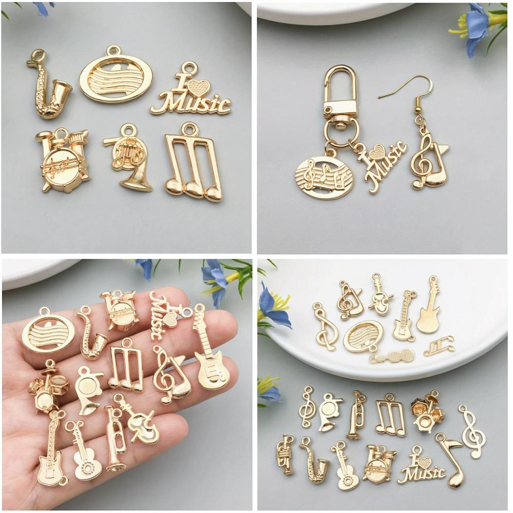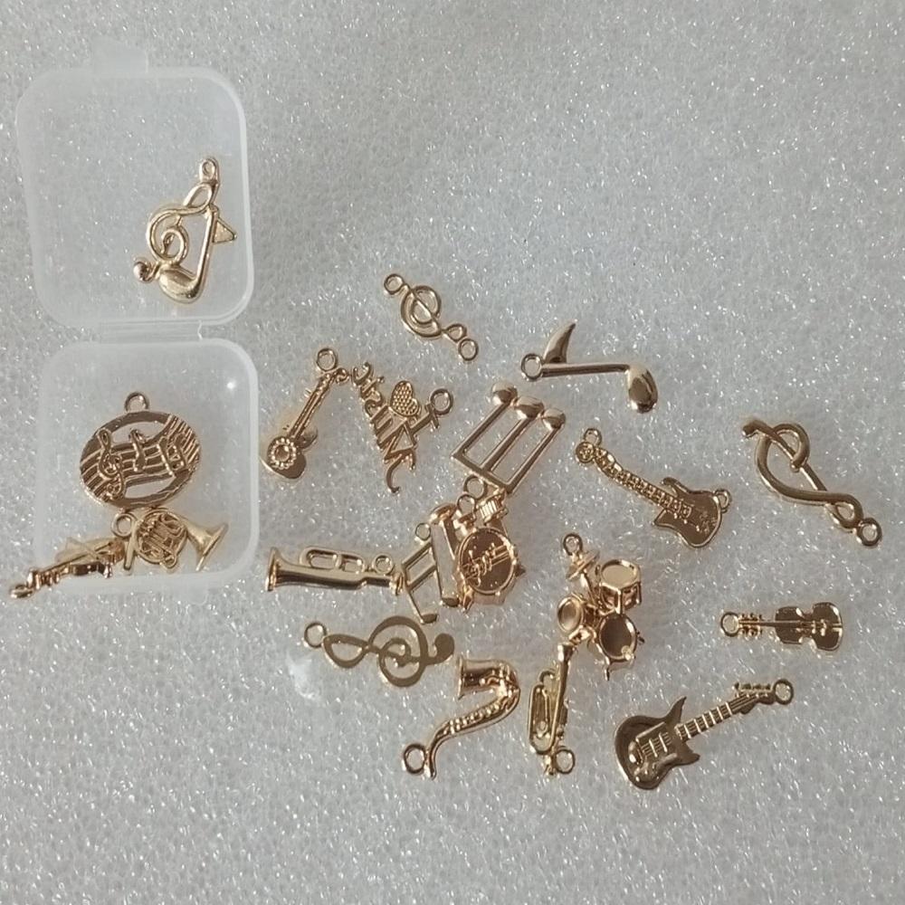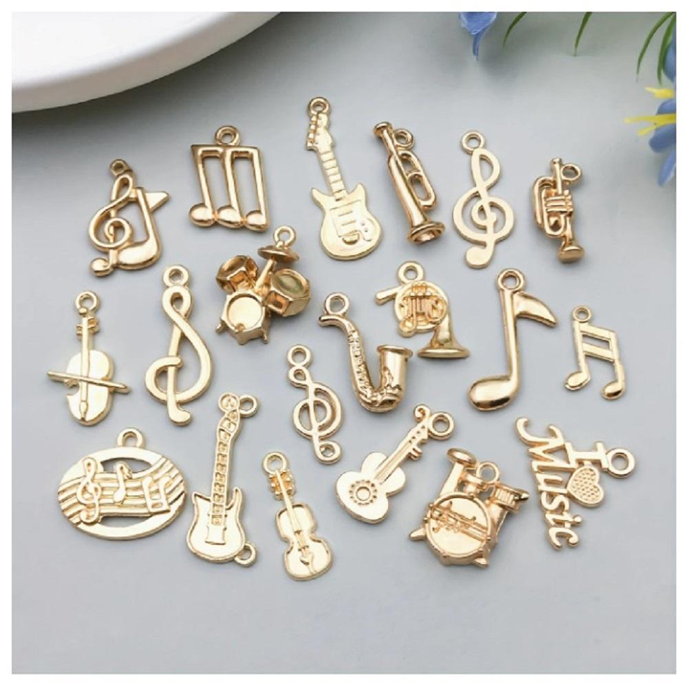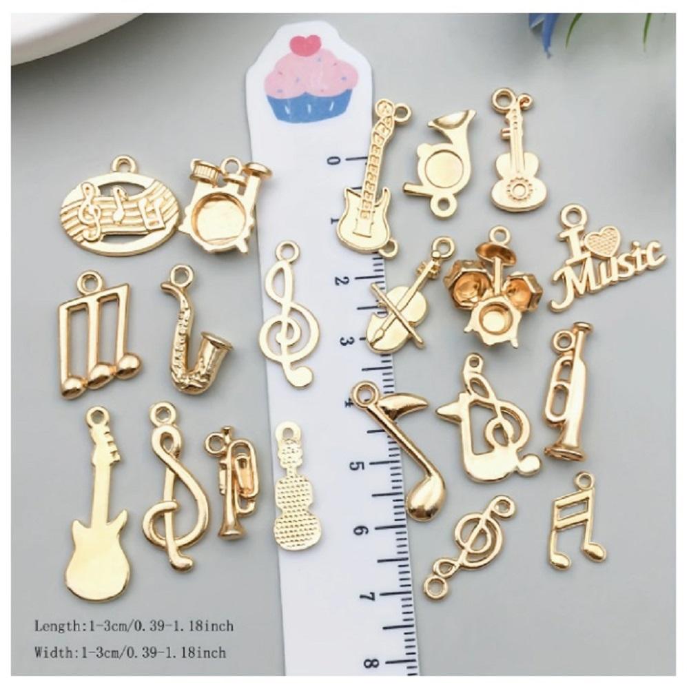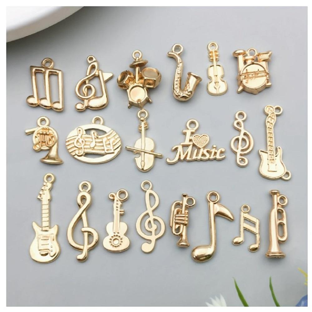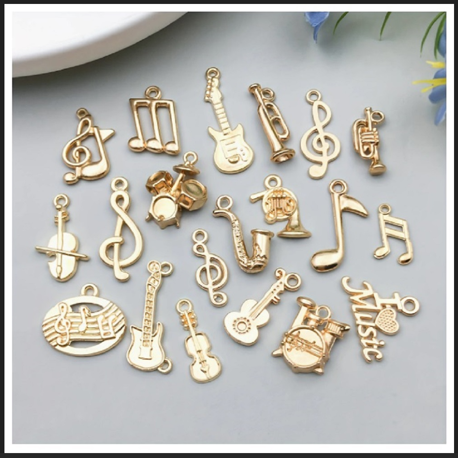 ( 20 X ADET ) 1 SET GOLD COLOUR MÜZİK TEMA SETİ ENSTRÜMAN & NOTA / BİLEKLİK & KÜPE & KOLYE UCU