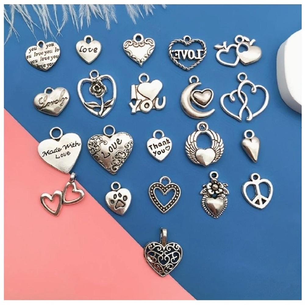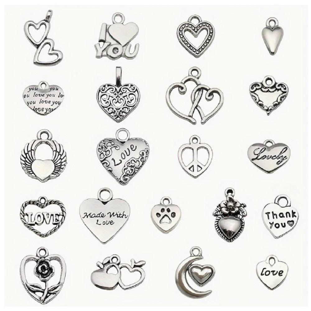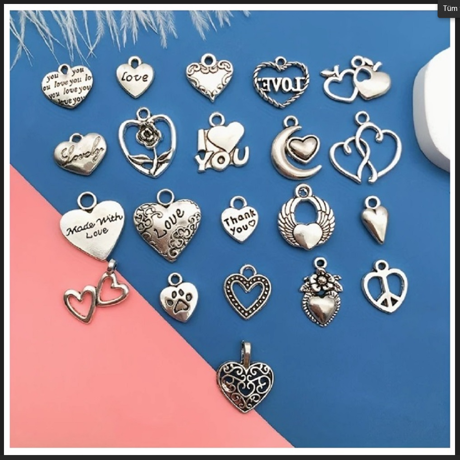 ( 20 X ADET ) 1 SET GÜMÜŞ MODEL HEART DAY KALP SÜSLERİ & KOLYE UCU & KÜPE & BİLEKLİK AKSESUARLARI