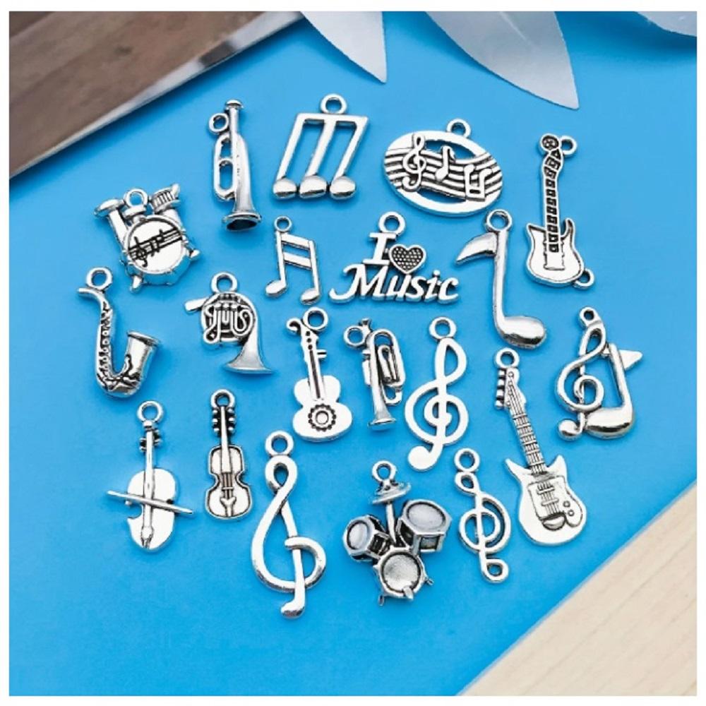 ( 20 X ADET ) 1 SET MÜZİK TEMA SETİ ENSTRÜMAN & NOTA / BİLEKLİK & KÜPE & KOLYE UCU