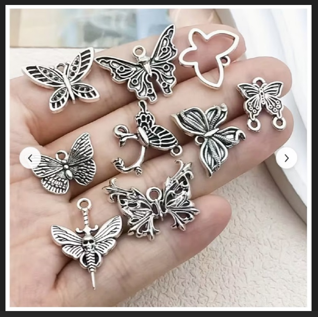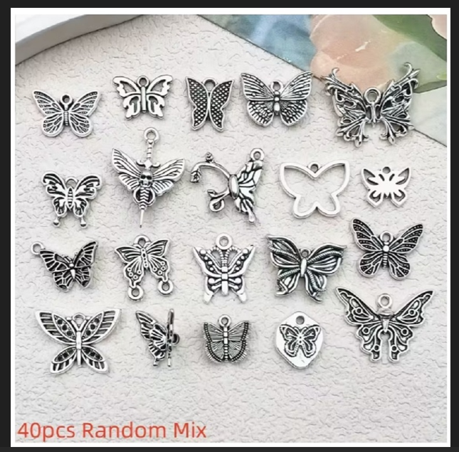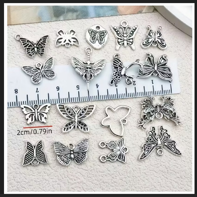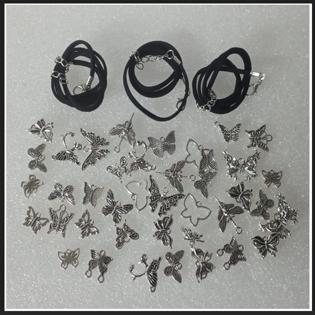 ( 40 X ADET ) 1 SET ANTİK GÜMÜŞ GÖRÜNÜM KELEBEK TAKI & BİLEKLİK & KÜPE & KOLYE UCU