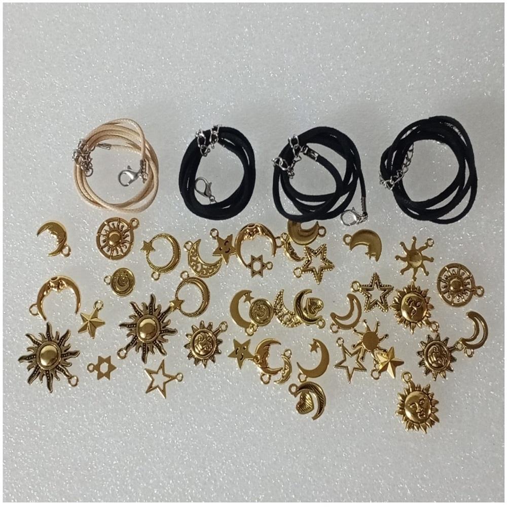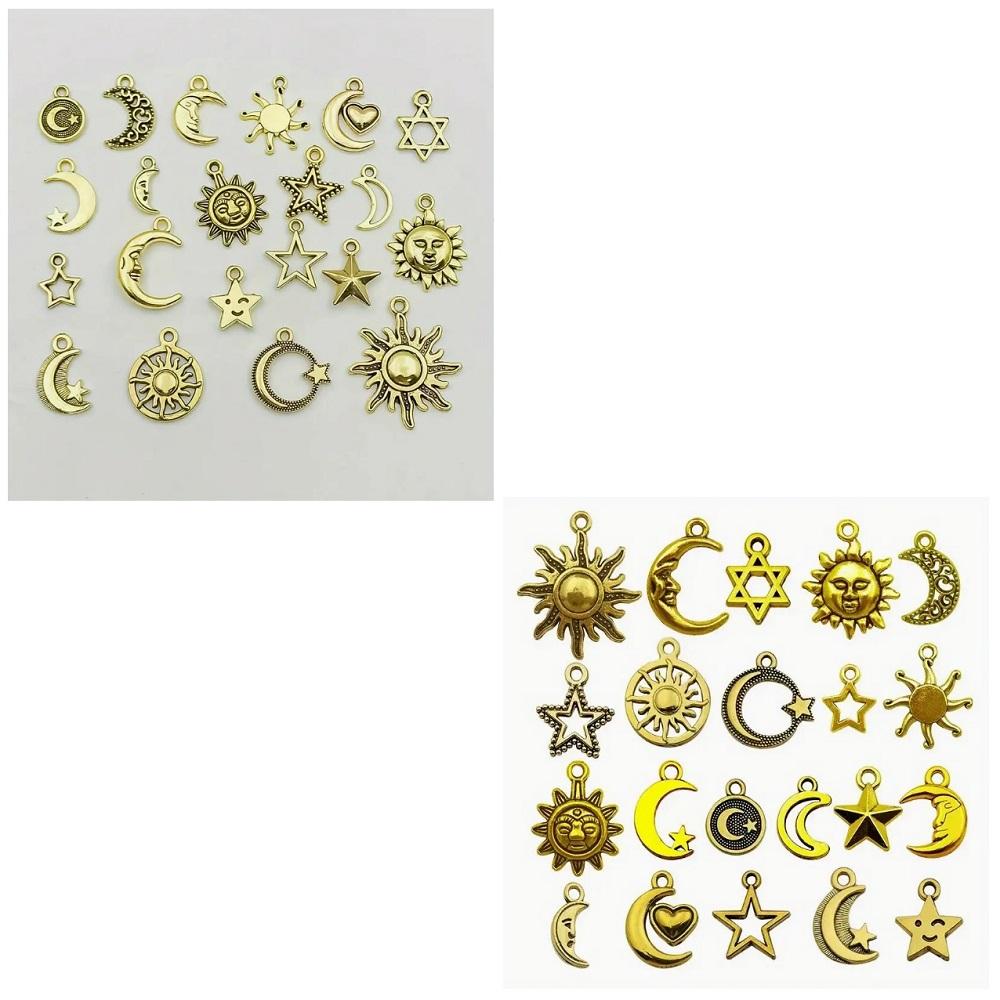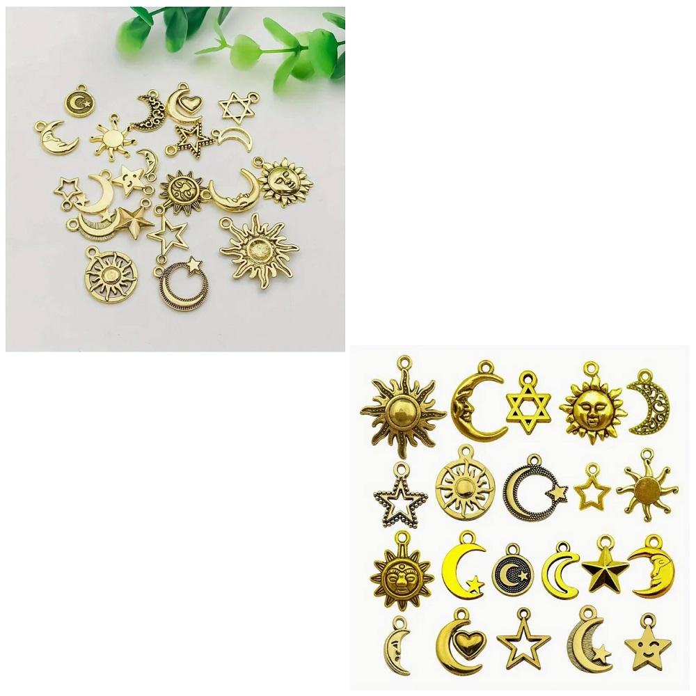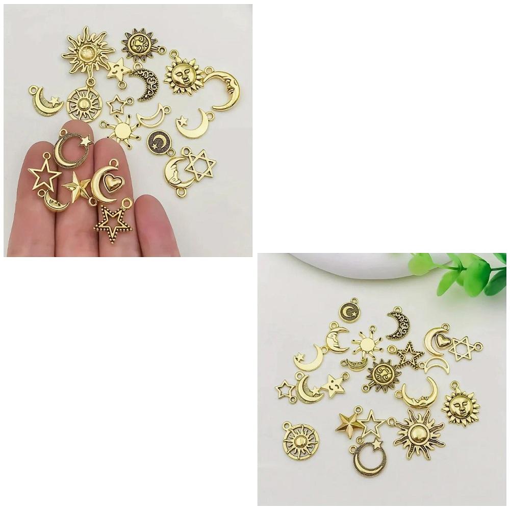 (40 X ADET) 1 SET KARIŞIK ANTİKA ALTIN GÜNEŞ&AY&YILDIZ&KALP BİLEKLİK&KÜPE&KOLYE UCU
