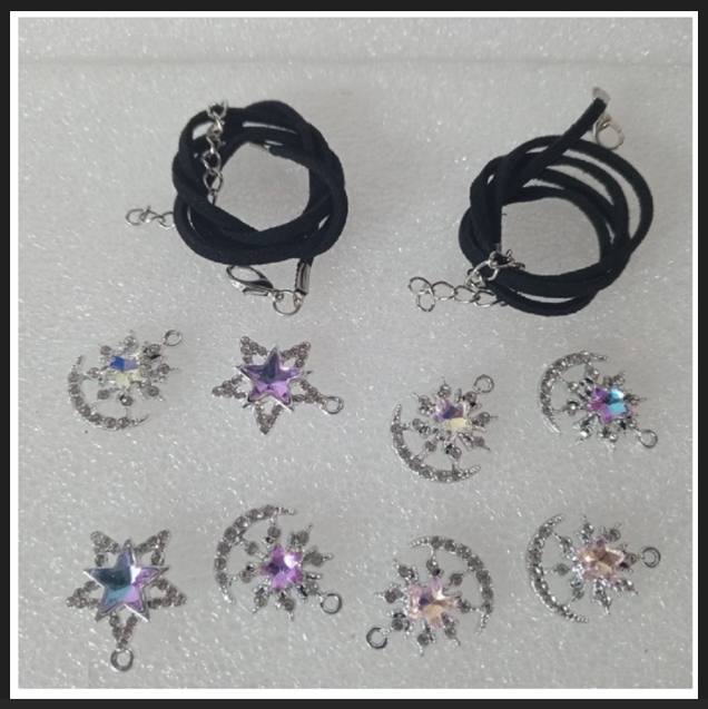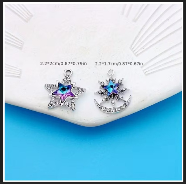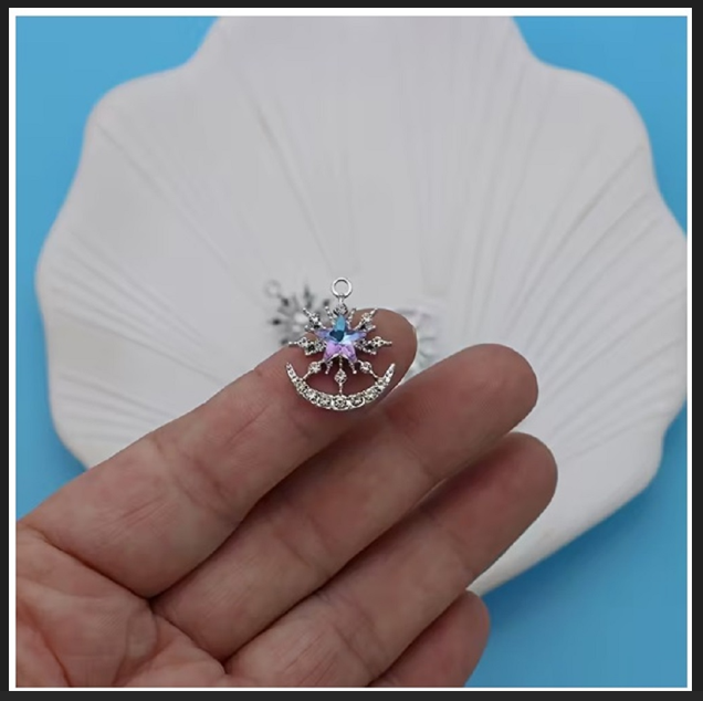 ( 4+4= 8 ADET ) YILDIZ AY & KAR TANESİ BEYAZ ALTIN & GÜMÜŞ GÖRÜNÜM TAKI&BİLEKLİK&KÜPE&KOLYE UCU