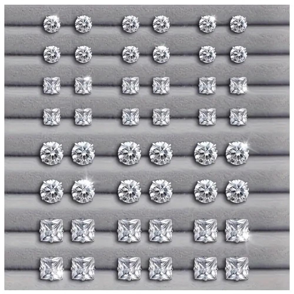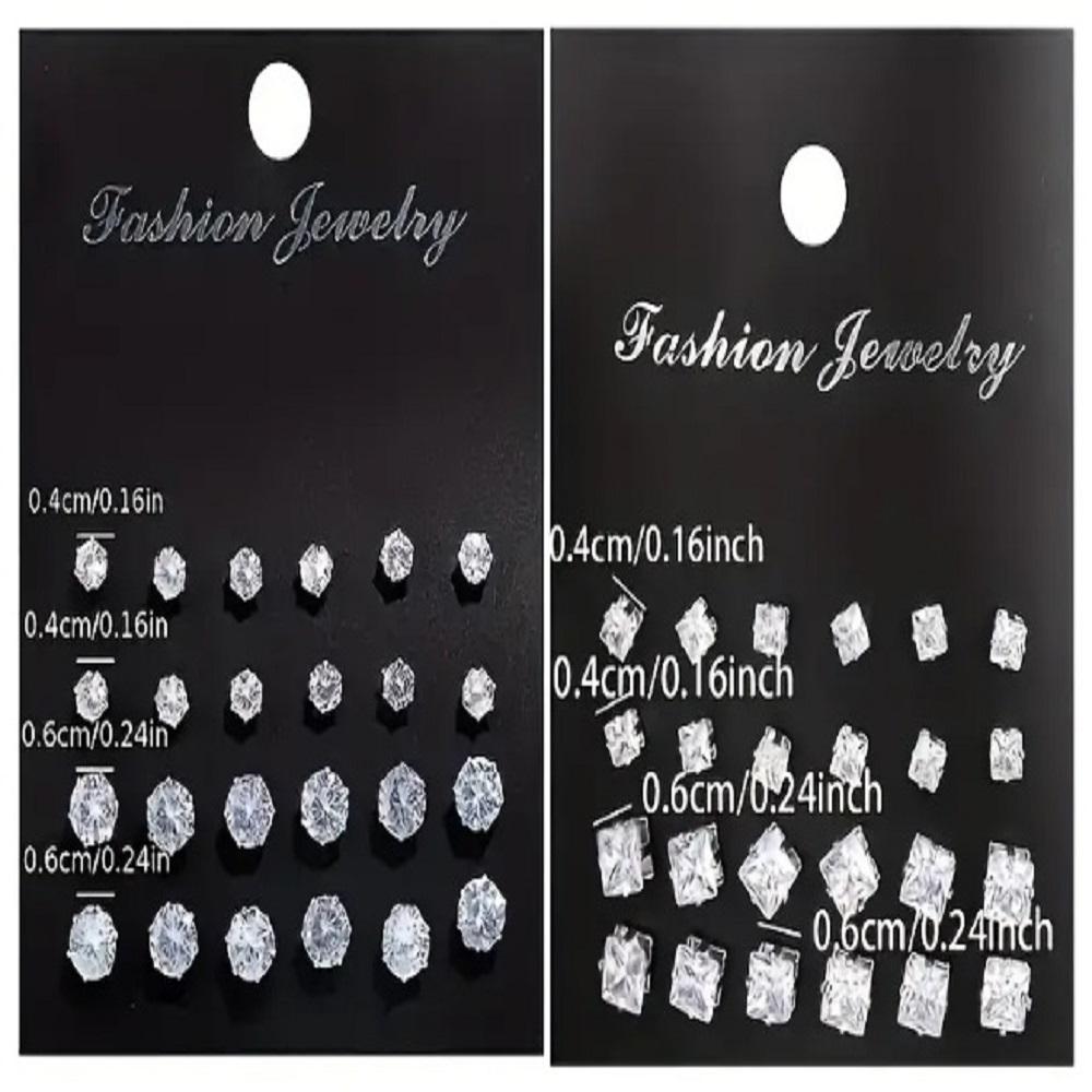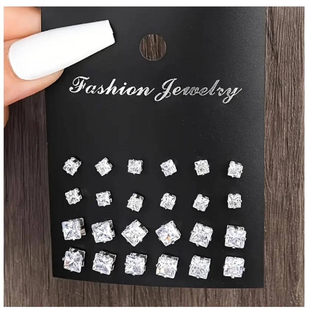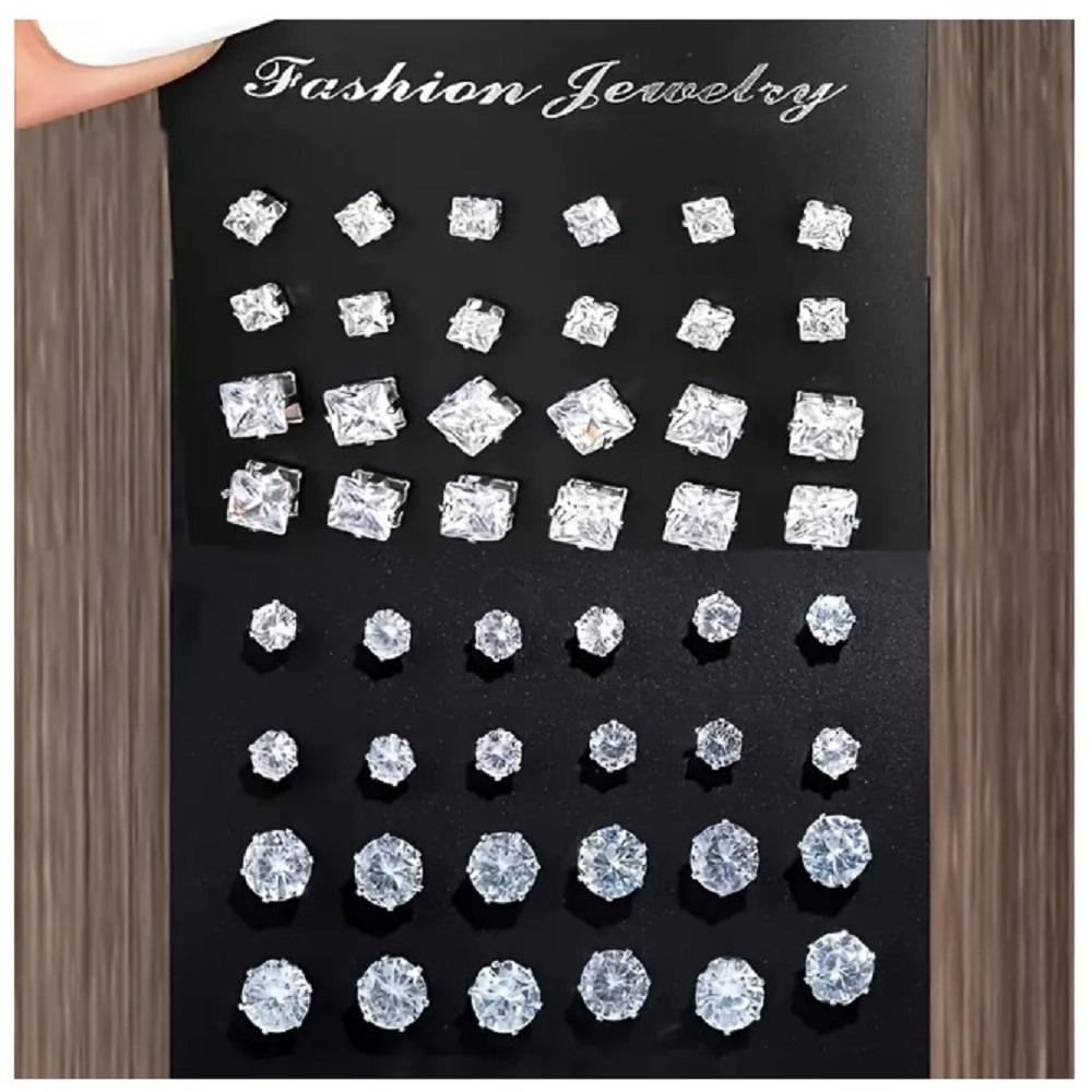 ( 48 PARÇA ) 1 SET YUVARLAK & KARE TAŞLI KÜPE SETİ