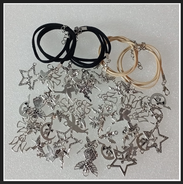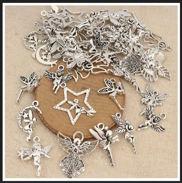 ( 50 X ADET ) 1 SET ANTİK GÜMÜŞ MELEK & PERİ BİLEKLİK & KÜPE & KOLYE UCU