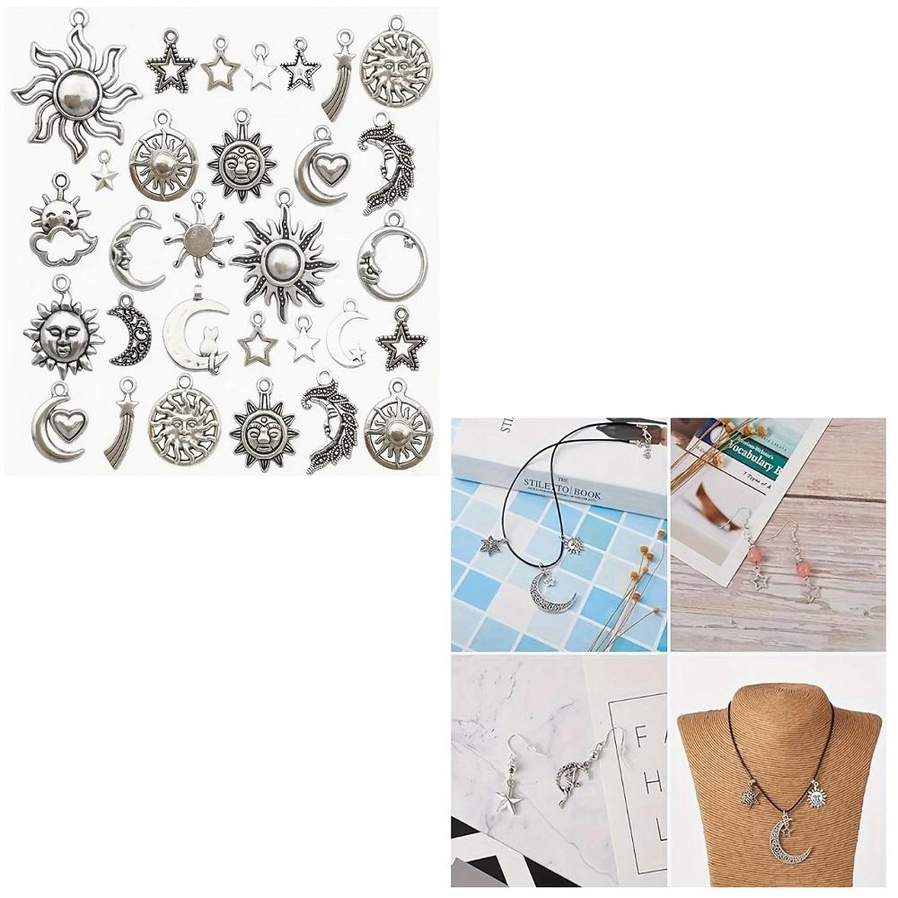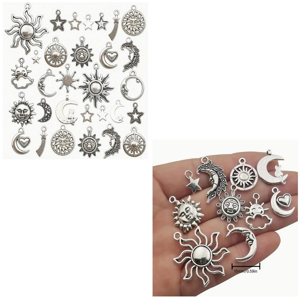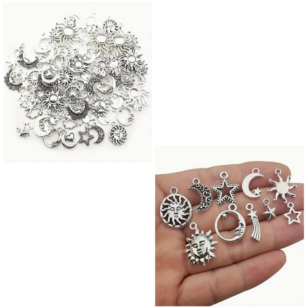 (50 X ADET) 1 SET KARIŞIK ANTİKA GÜMÜŞ GÜNEŞ&AY&YILDIZ BİLEKLİK&KÜPE&KOLYE UCU