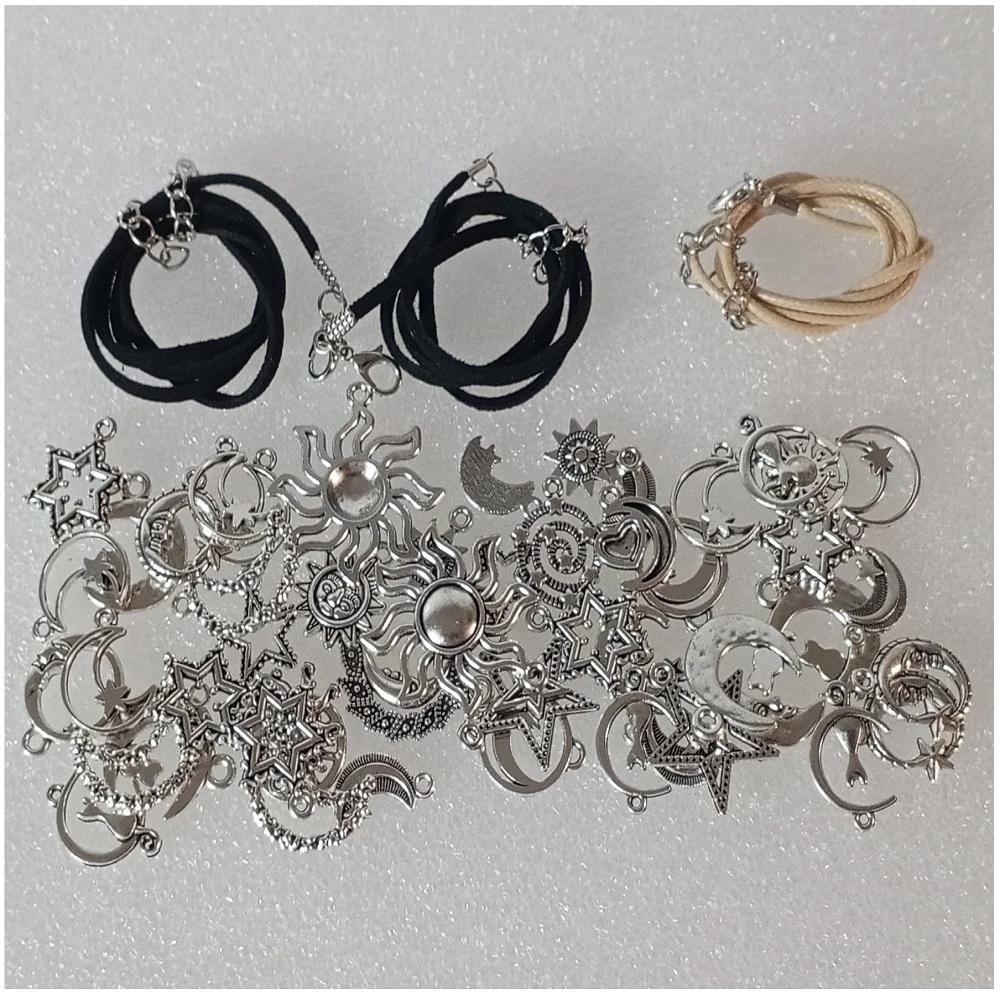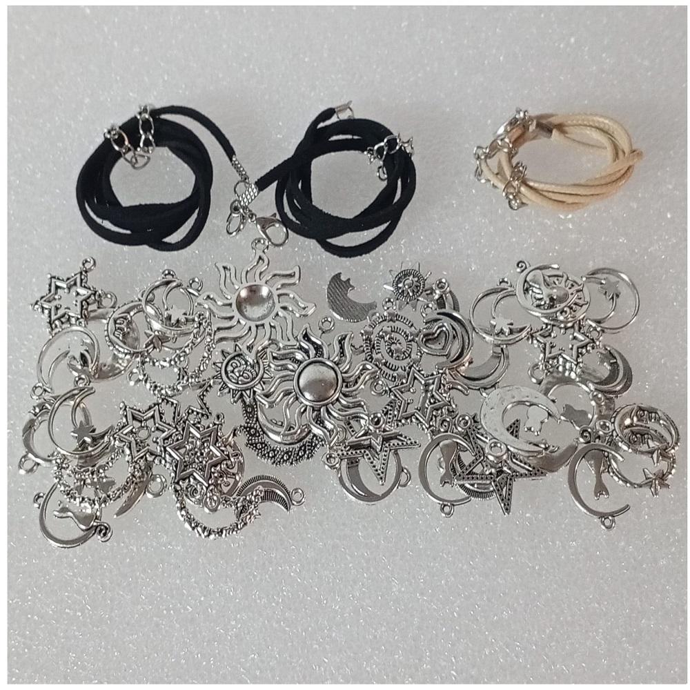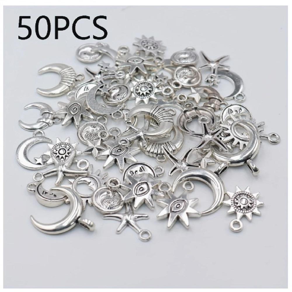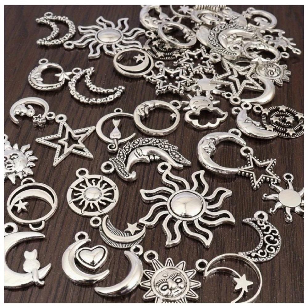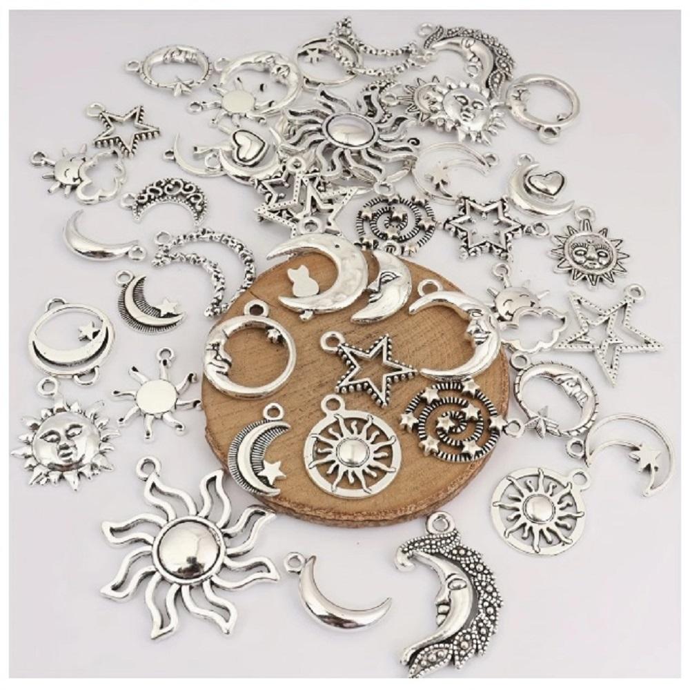 (50 X ADET) 1 SET KARIŞIK ANTİKA SİMLİ GÜNEŞ & AY & YILDIZ / BİLEKLİK & KÜPE & KOLYE