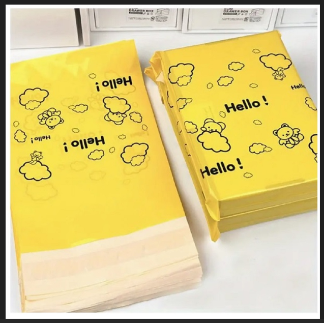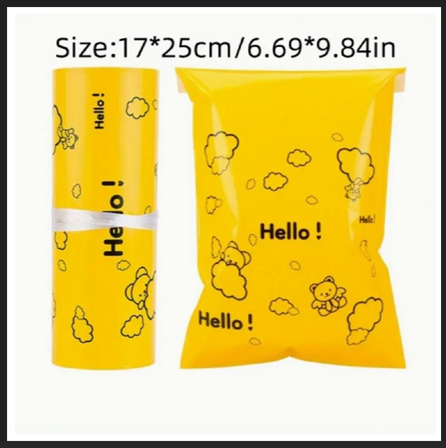 (50XADET) 1 PAKET CEPSİZ SU GEÇİRMEZ&KENDİNDEN YAPIŞKANLI&KARİKATÜR AYI+HELLO TASARIM ÜRÜN PAKETİ KARGO POŞETİ