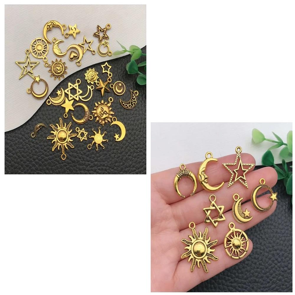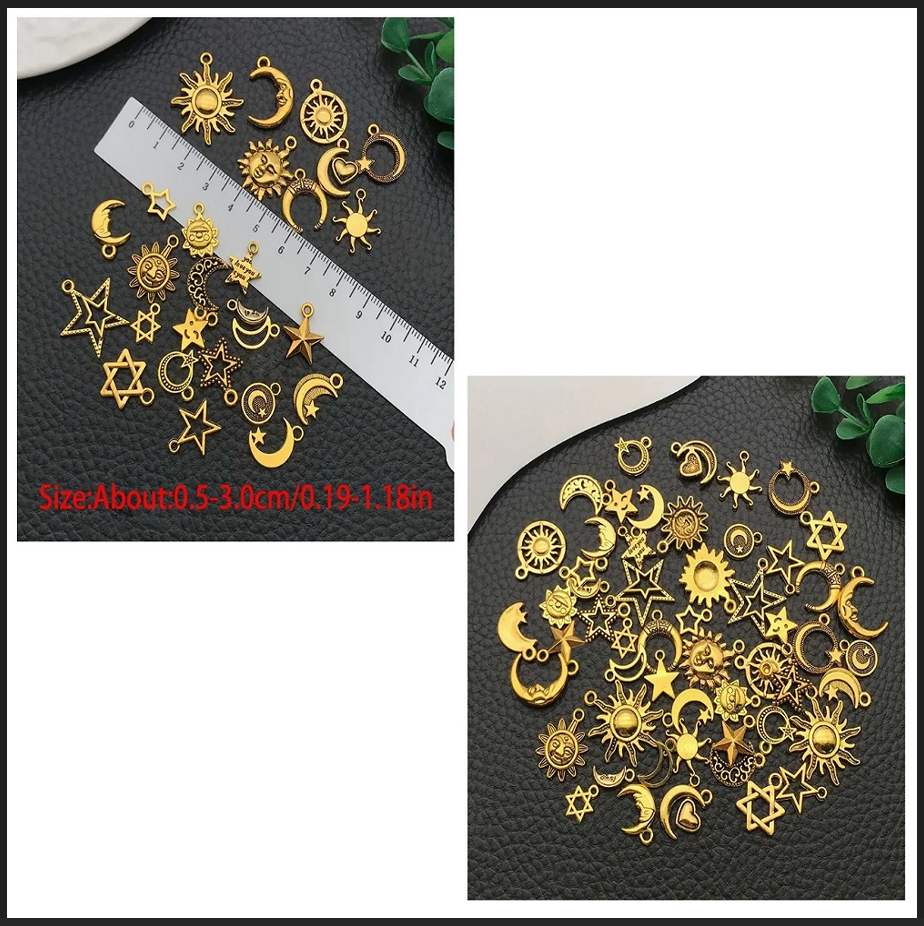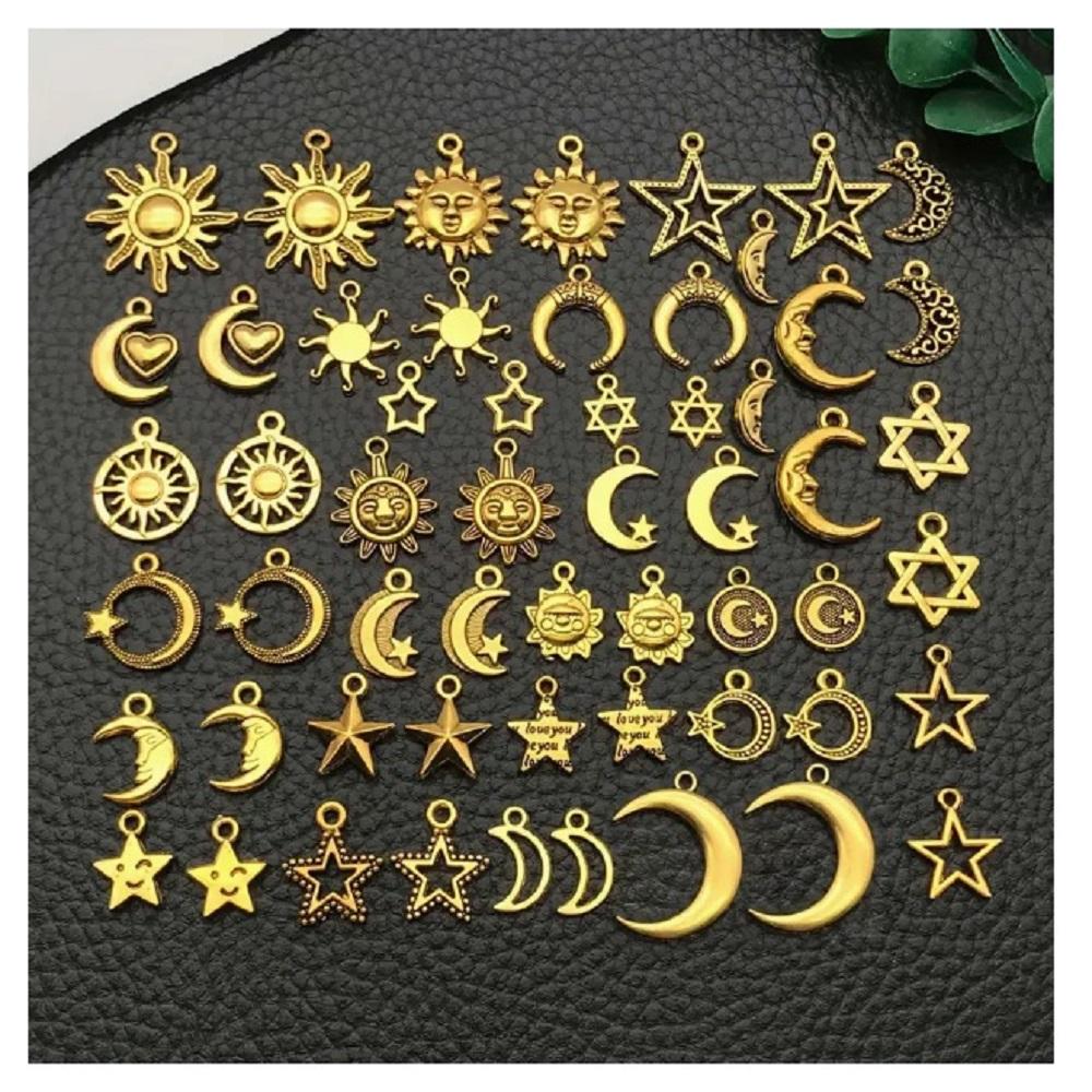 (56 X ADET) 1 SET RETRO GÜNEŞ&YILDIZ&AY ALAŞIM BİLEKLİK&KÜPE&KOLYE UCU