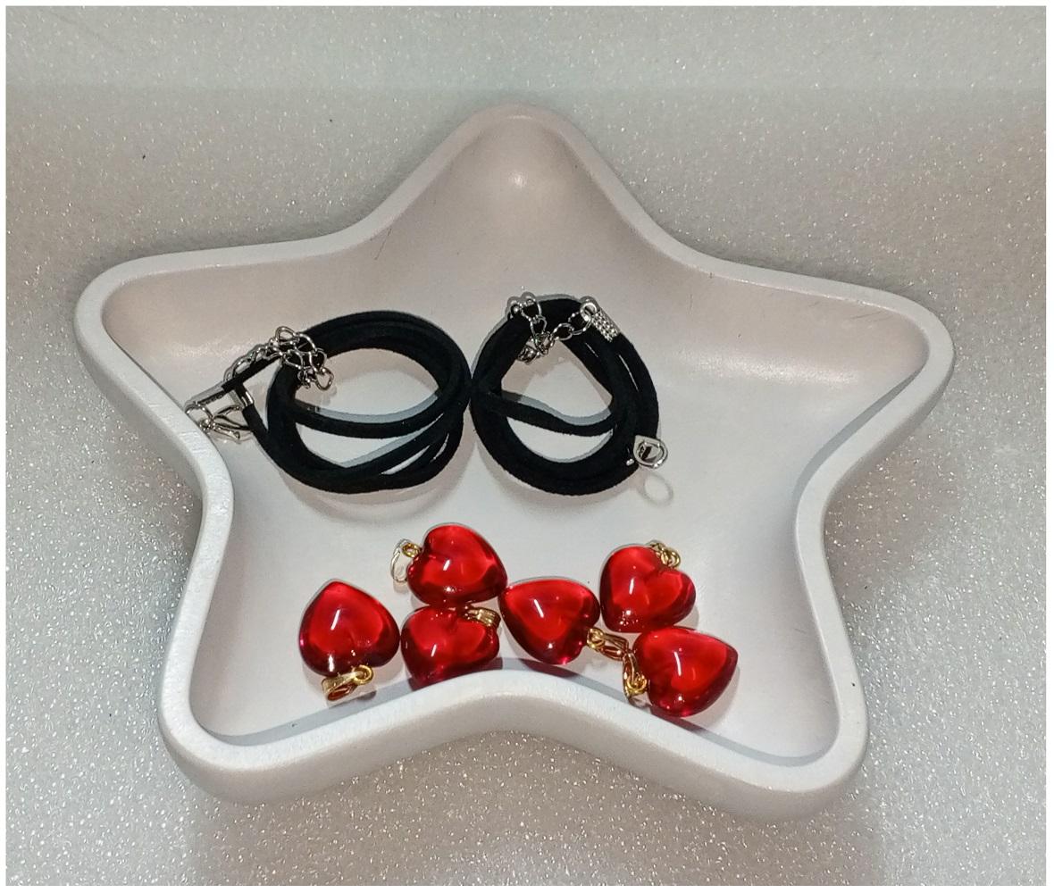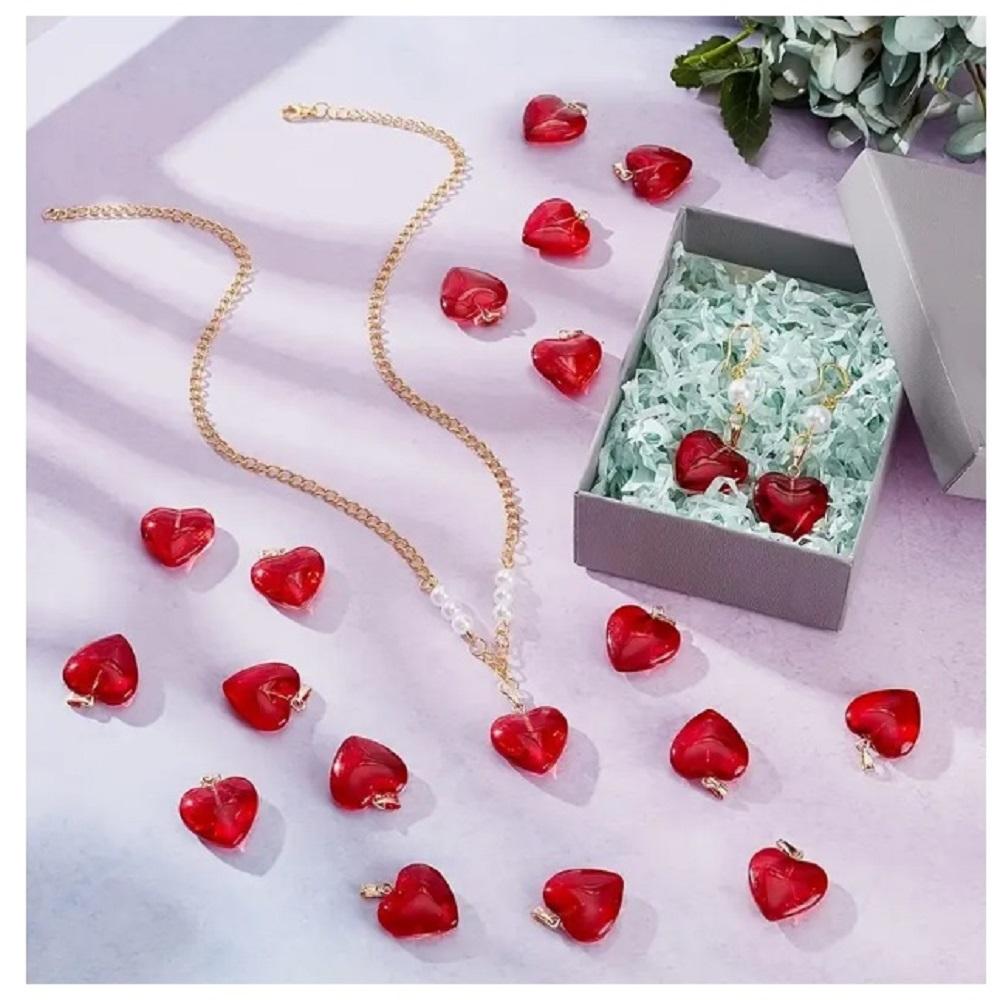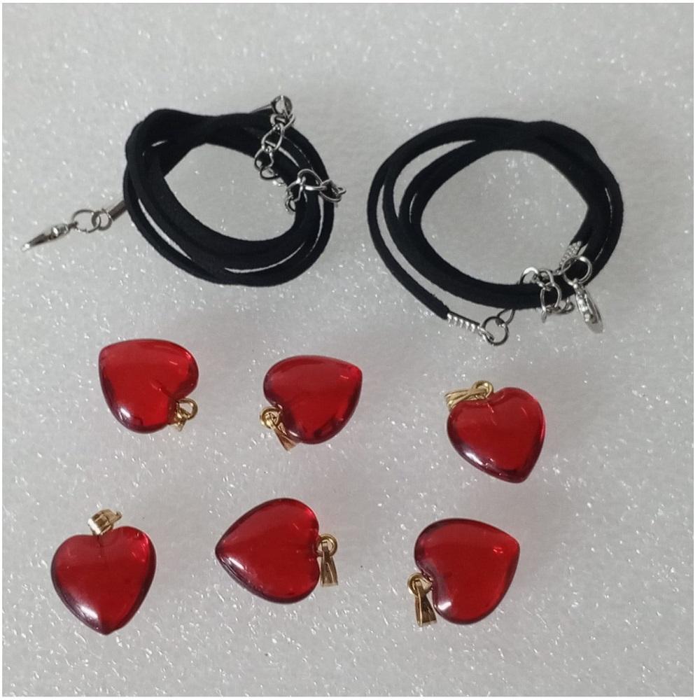 ( 6 X ADET ) 1 SET RED HEART ŞEFFAF CAM KIRMIZI KALP BİLEKLİK & KÜPE & KOLYE ( GÜNLÜK SAKLAMA & SUNUM TABAĞI İLE BERABER )