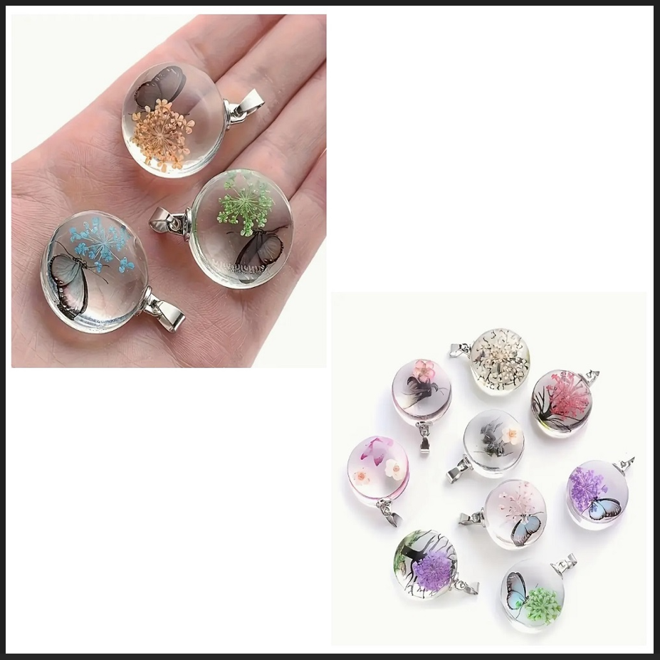 ( 6 X ADET ) 1 SET YUVARLAK ŞEFFAF CAM KURUTULMUŞ ÇİÇEKLİK BİLEKLİK&KÜPE&KOLYE UCU