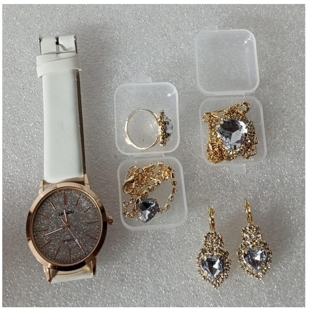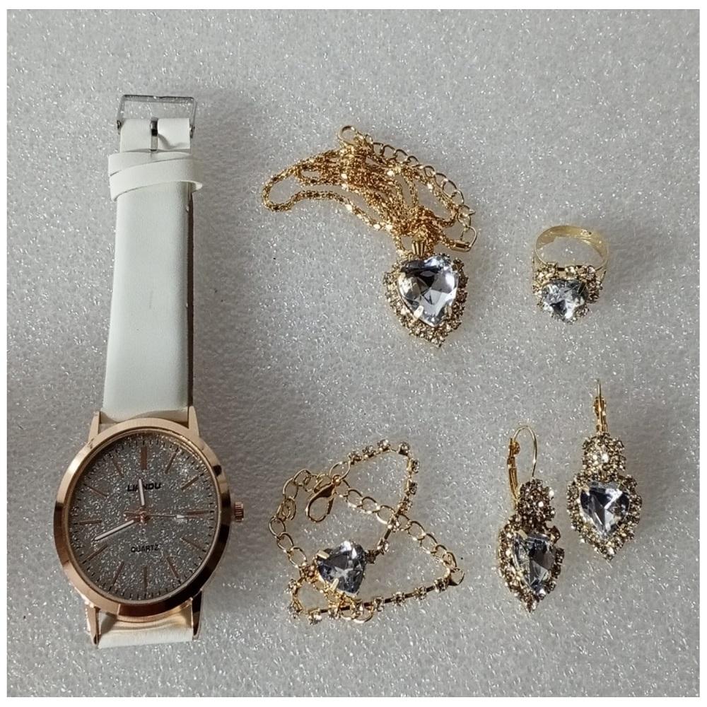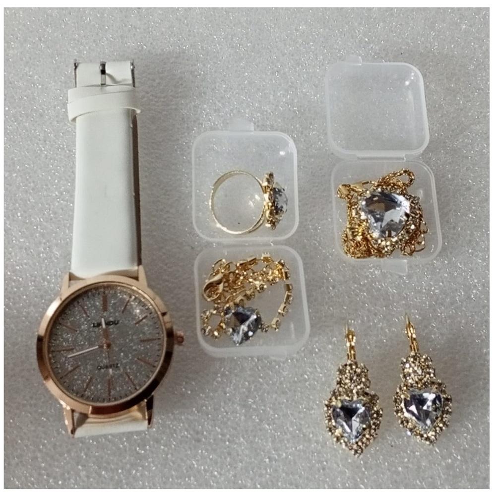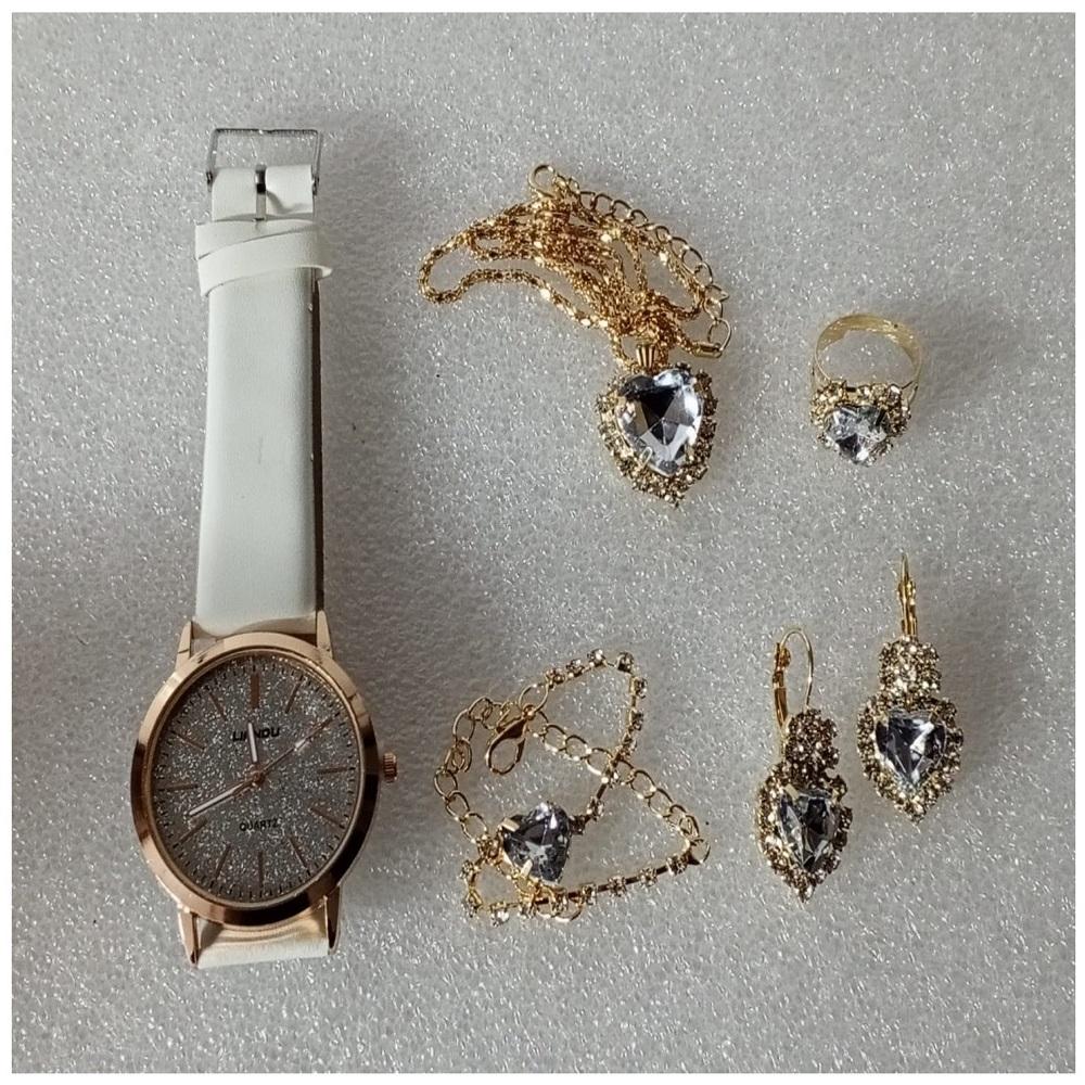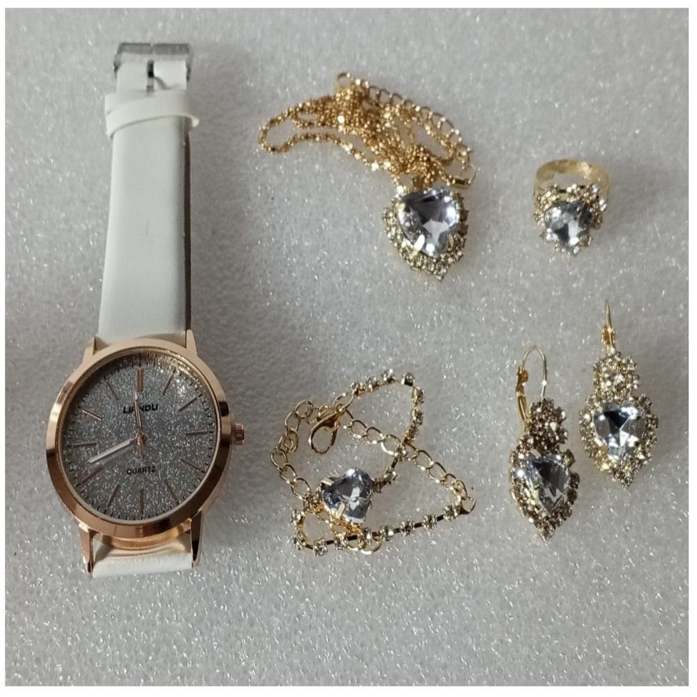 ( 6 X PARÇA ) TIME CRYSTAL SAAT + KALP KUPE +KOLYE + BİLEKLİK + YÜZÜK TAKI SETİ KRİSTAL