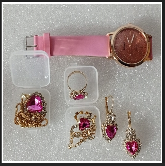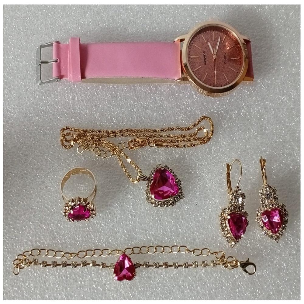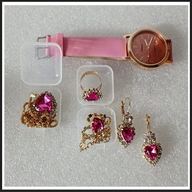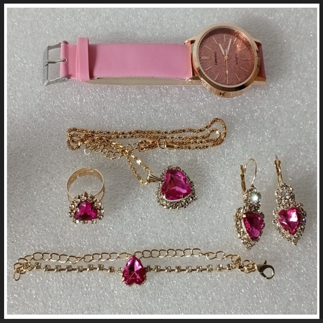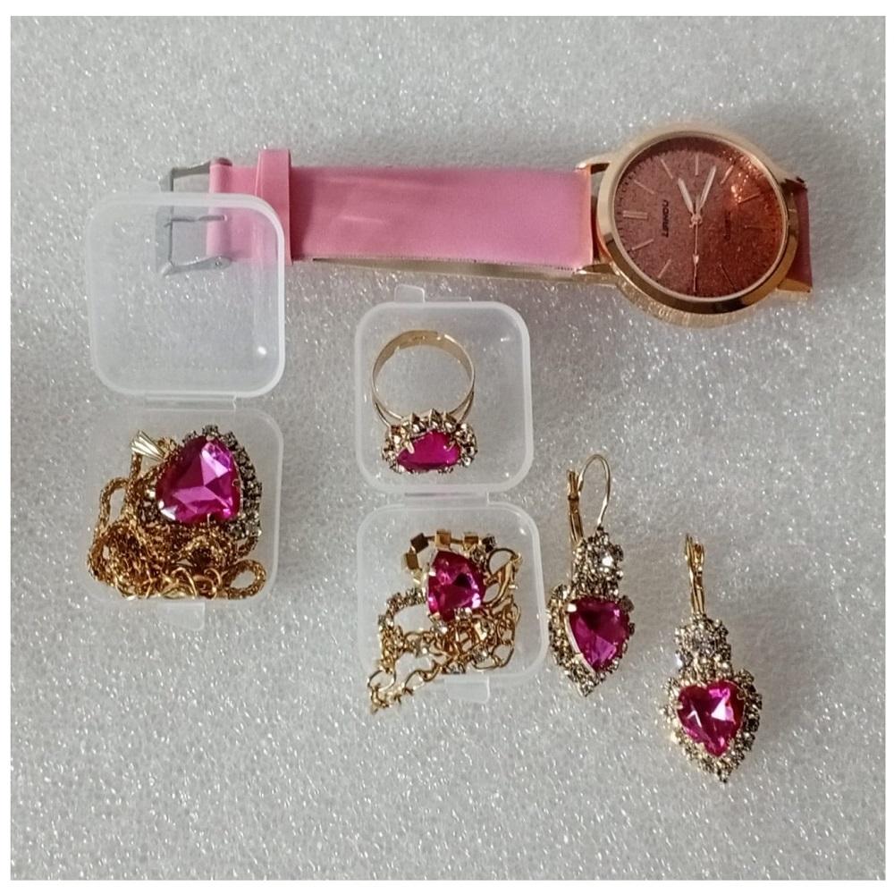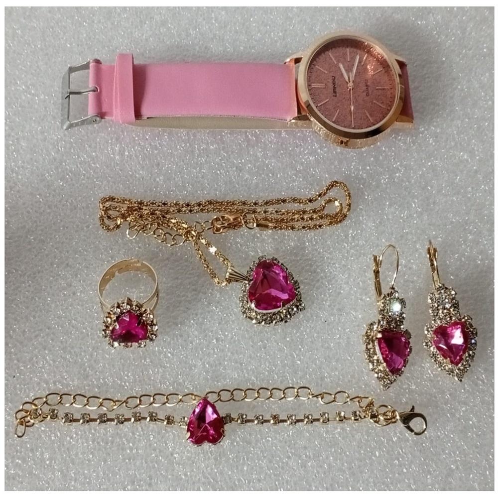 ( 6 X PARÇA ) TIME ROSE RED SAAT + KALP KUPE +KOLYE + BİLEKLİK + YÜZÜK TAKI SETİ GÜL KIRMIZISI