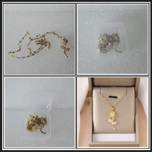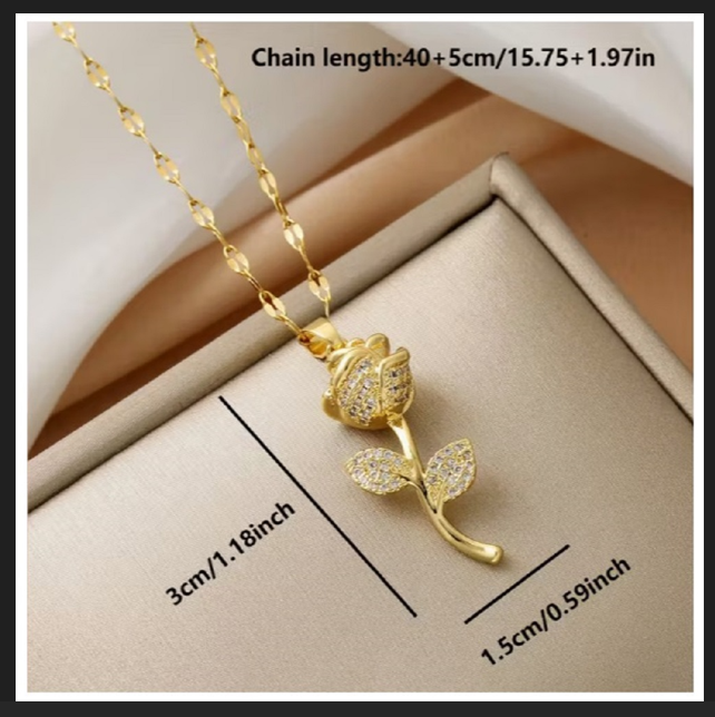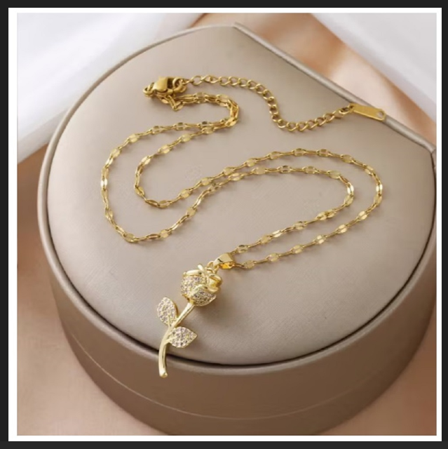 GÜNLÜK GİYİM & İŞ YERİ EMBOSSED ROSE ZİNCİRLİ KOLYE KABARTMA GÜL