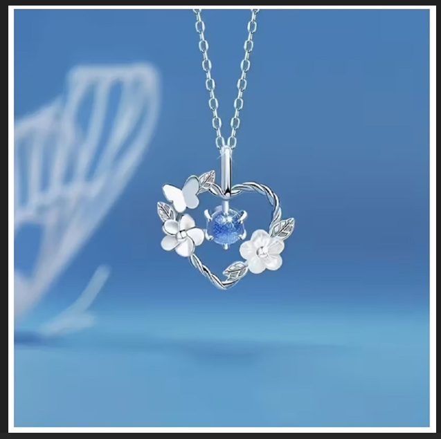 GÜNLÜK GİYİM & İŞ YERİ ZİNCİRLİ MAVİ TAŞ & ÇİÇEK & KALP MAVİ YAKUT GÖRÜNÜM KOLYE