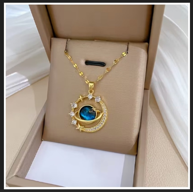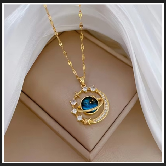 GÜNLÜK GİYİM & İŞ YERİ ZİNCİRLİ MAVİ TAŞ & RÜYA & GEZEGEN MAVİ YAKUT GÖRÜNÜM KOLYE