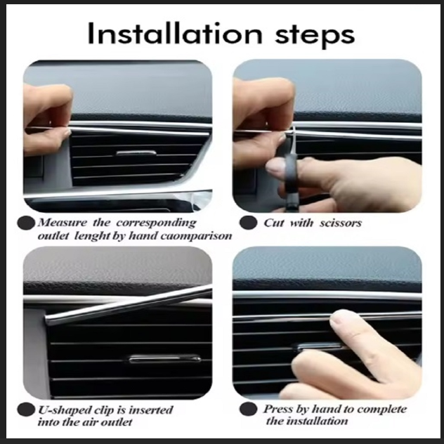 .QUALITY. ( 10 X ADET ) 1 SET 20CM NİKEL ARAÇ KALORİFER&KLİMA ÇIKIŞ IZGARA DEKORASYON ŞERİT&KAPI KENAR KORUYUCU
