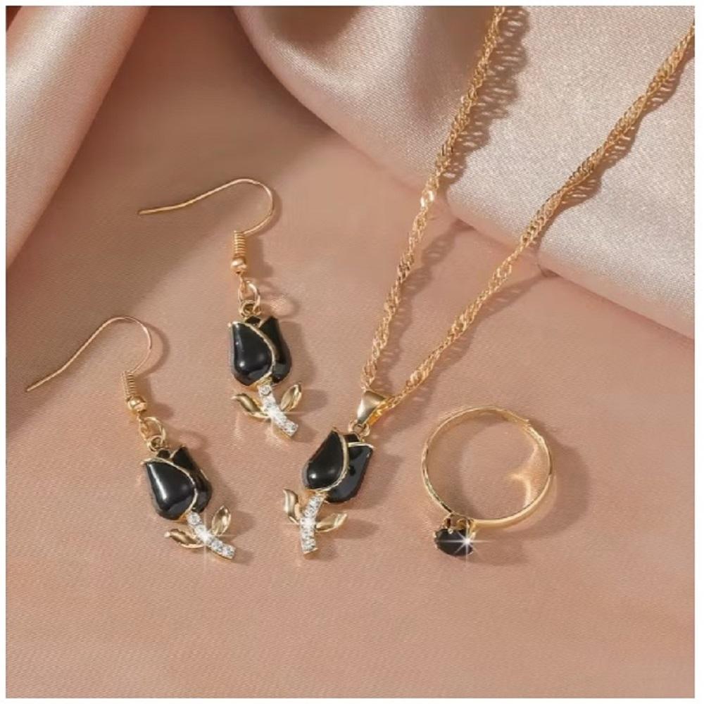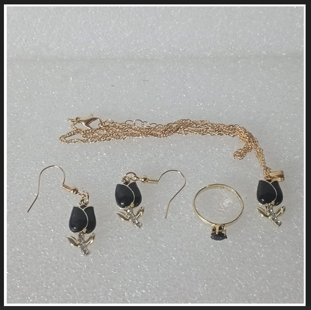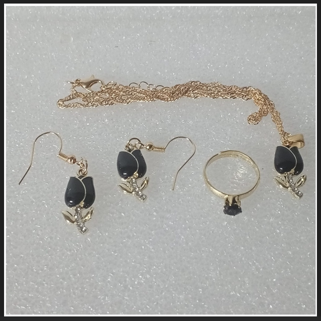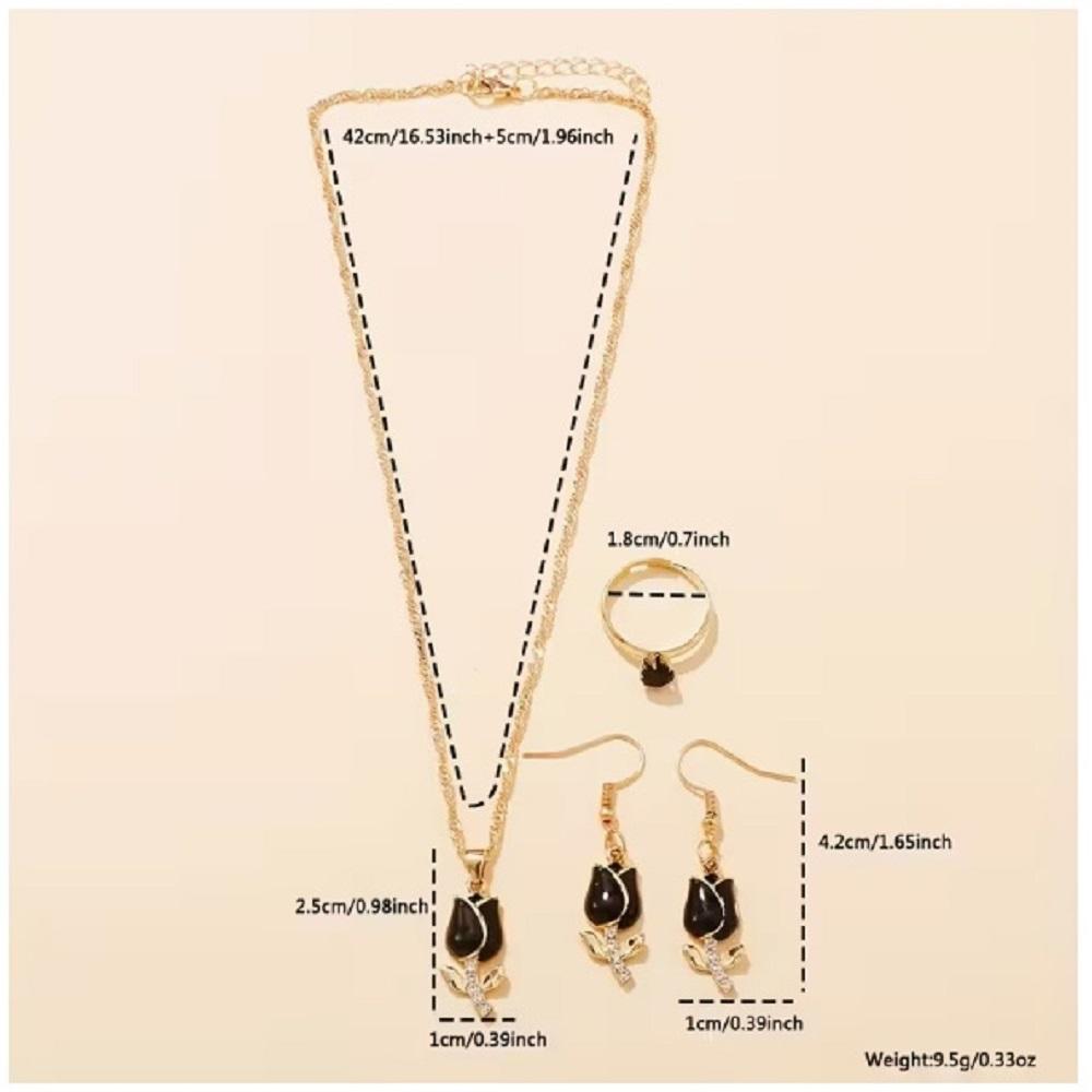 SET GÜNLÜK GİYİM & İŞ YERİ BLACK TULIP ZİNCİRLİ KOLYE & YÜZÜK & KÜPE SETİ