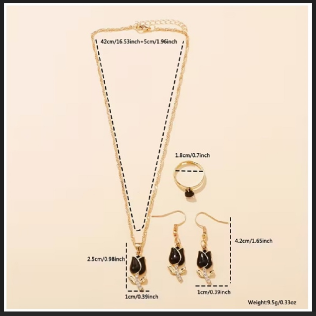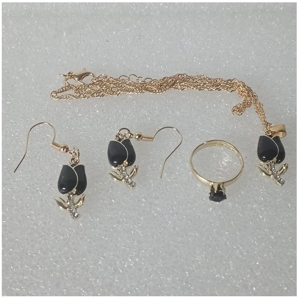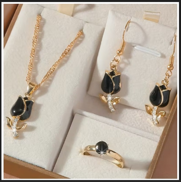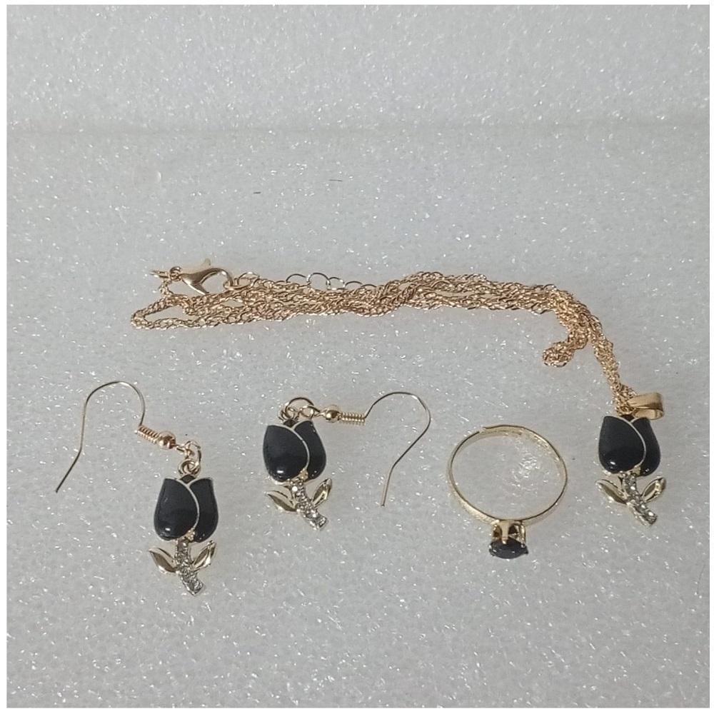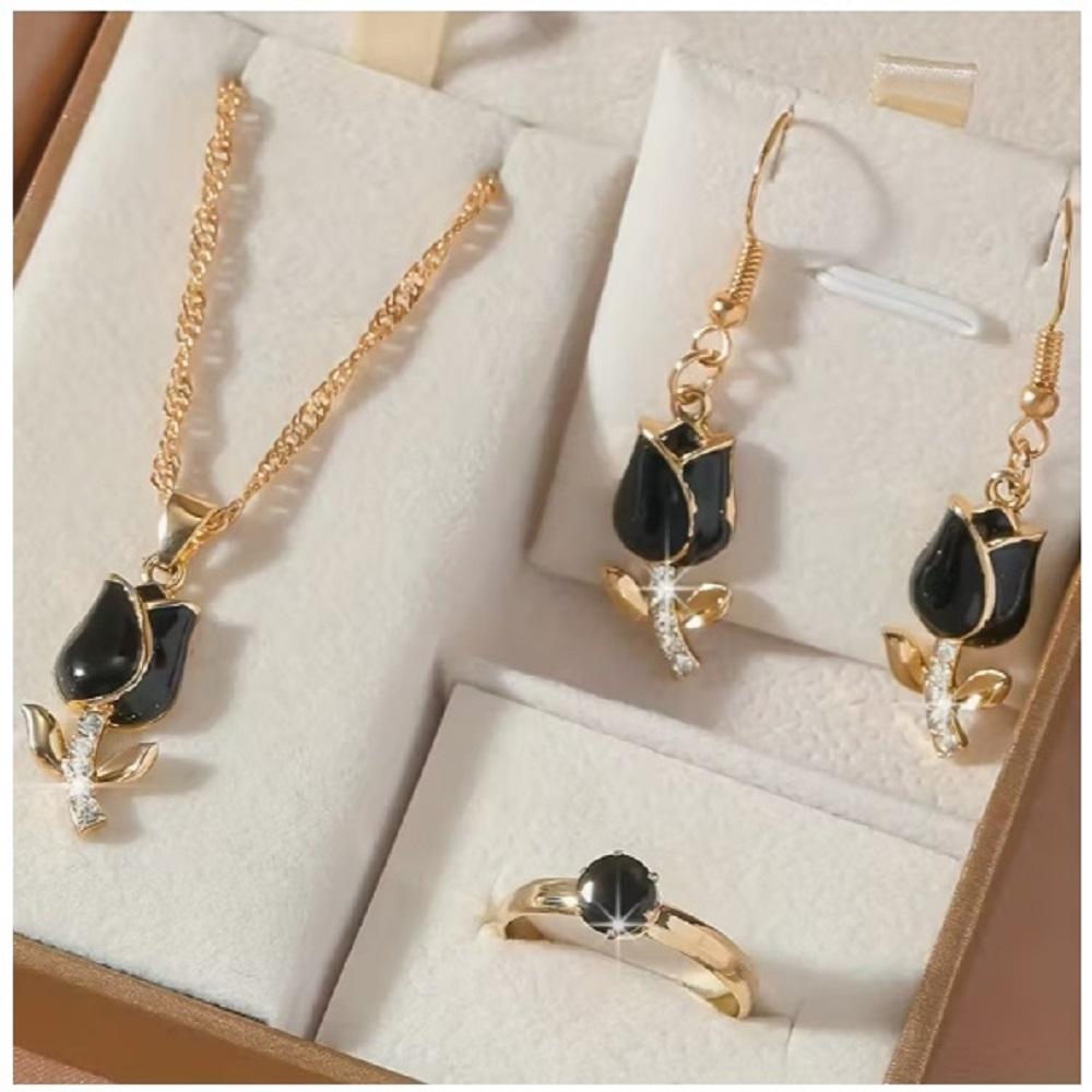 SET GÜNLÜK GİYİM & İŞ YERİ BLACK TULIP ZİNCİRLİ KOLYE & YÜZÜK & KÜPE SETİ