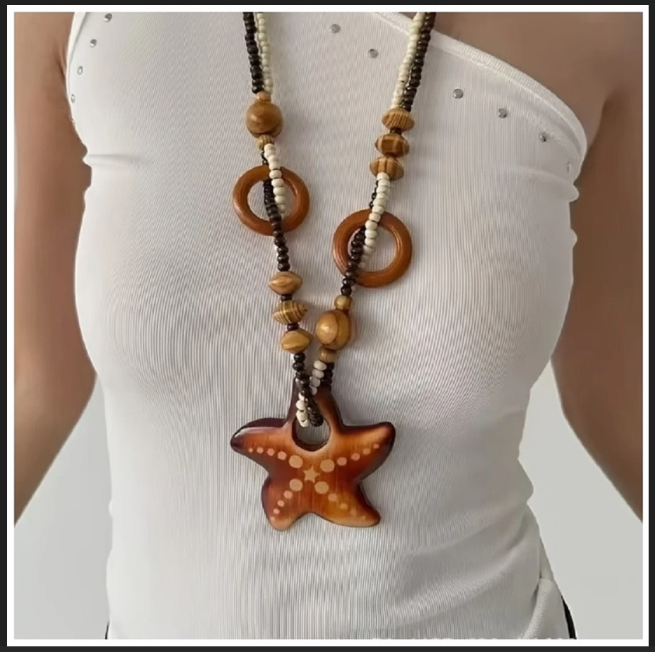 VİNTAGE PLAJ MODEL DENİZ YILDIZI & HAVA KABARCIK BONCUKLARI AKSESUAR KOLYE