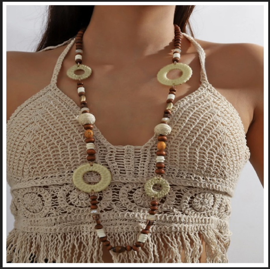 WOODEN SET PLAJ MODEL AHŞAP BONCUK & KÜPE TAKI SETİ